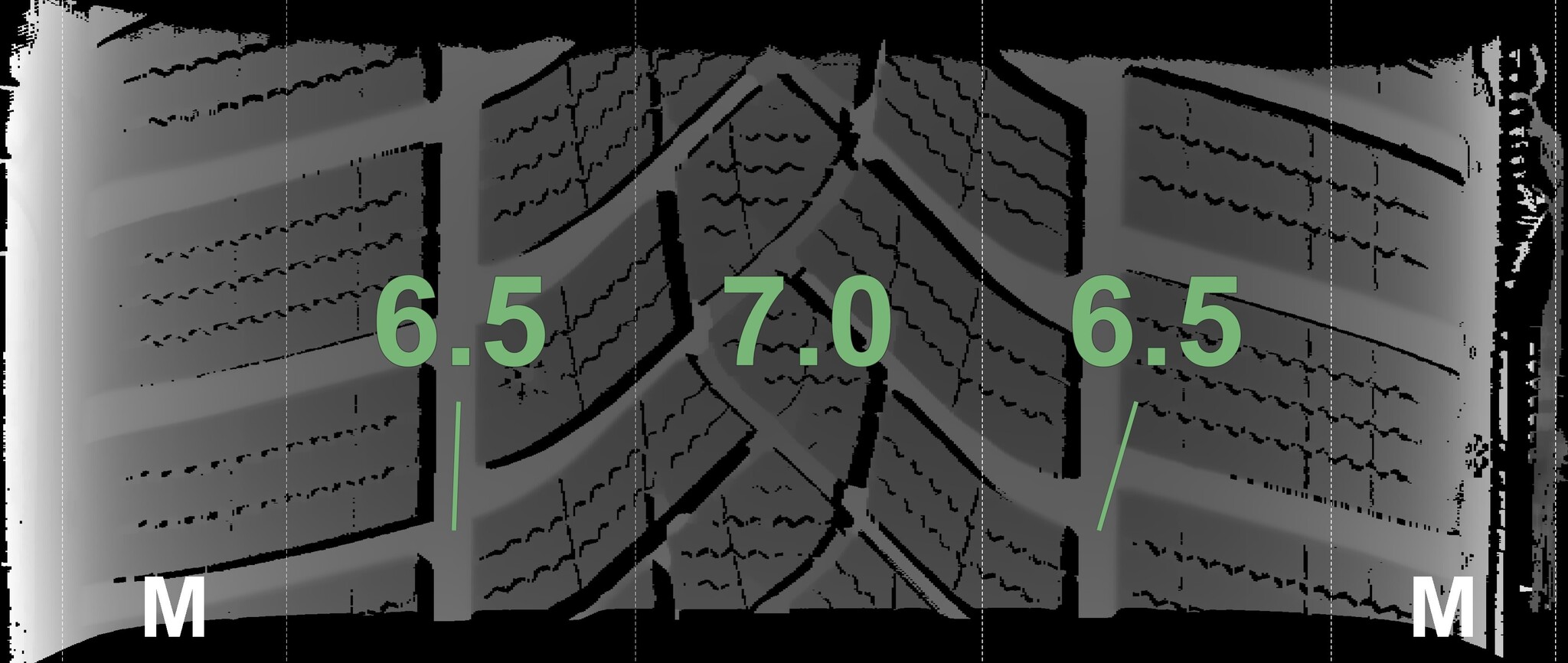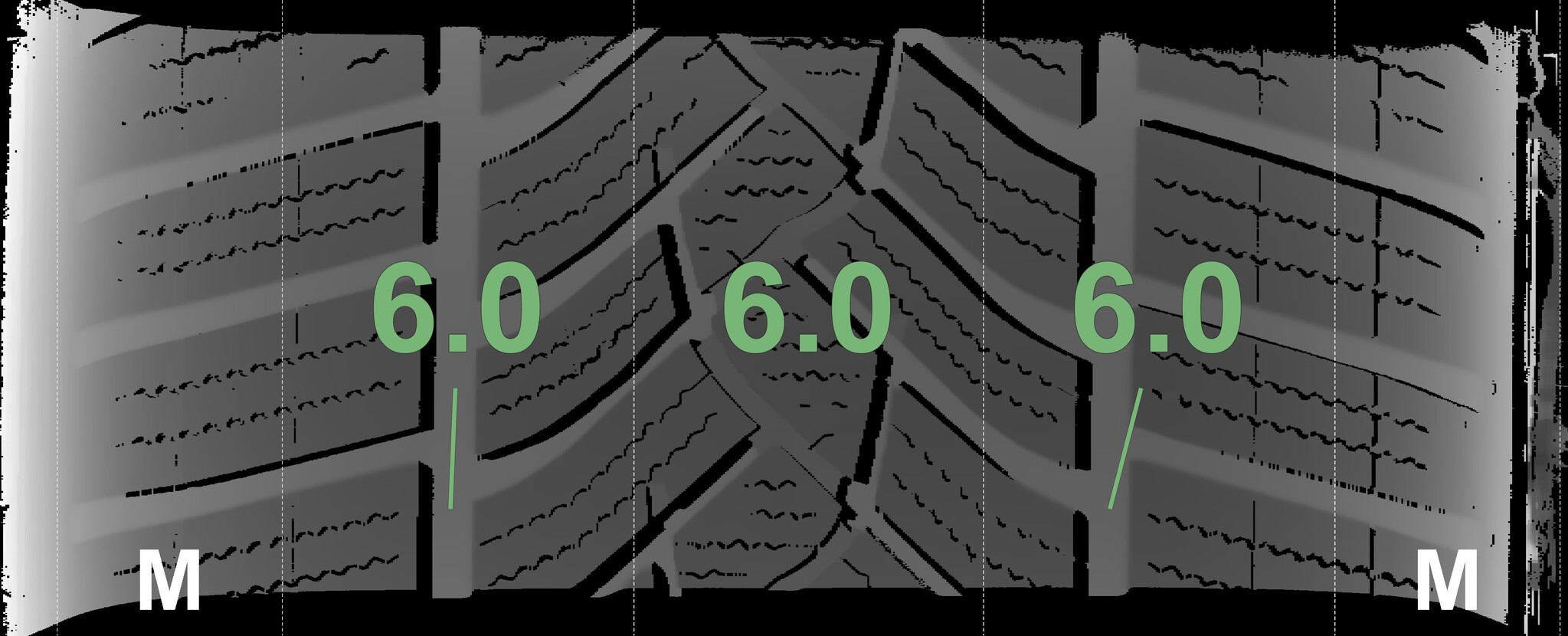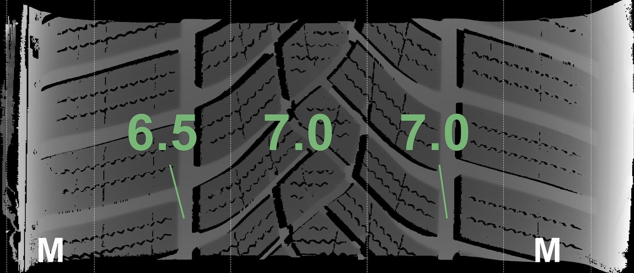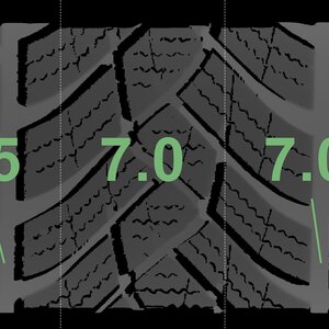The measured tread depths and the details of the rims are shown above.