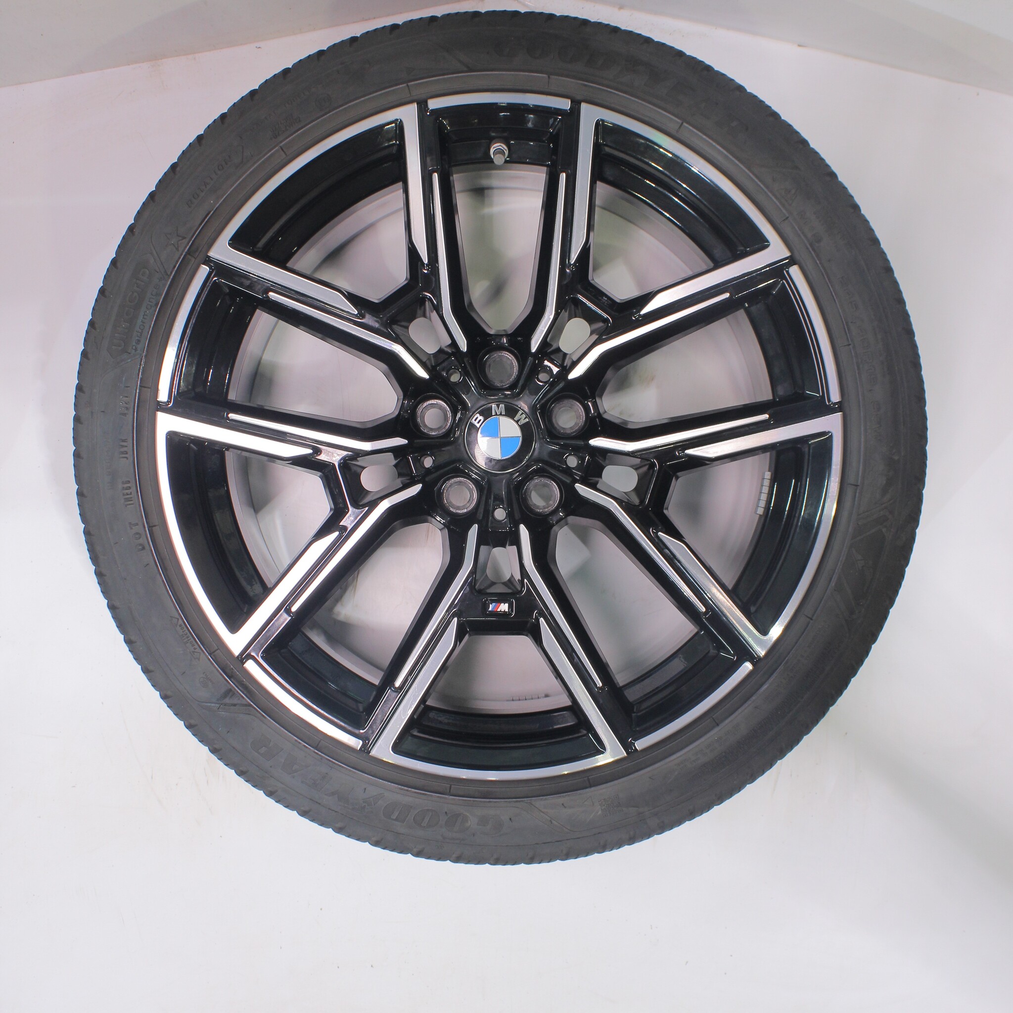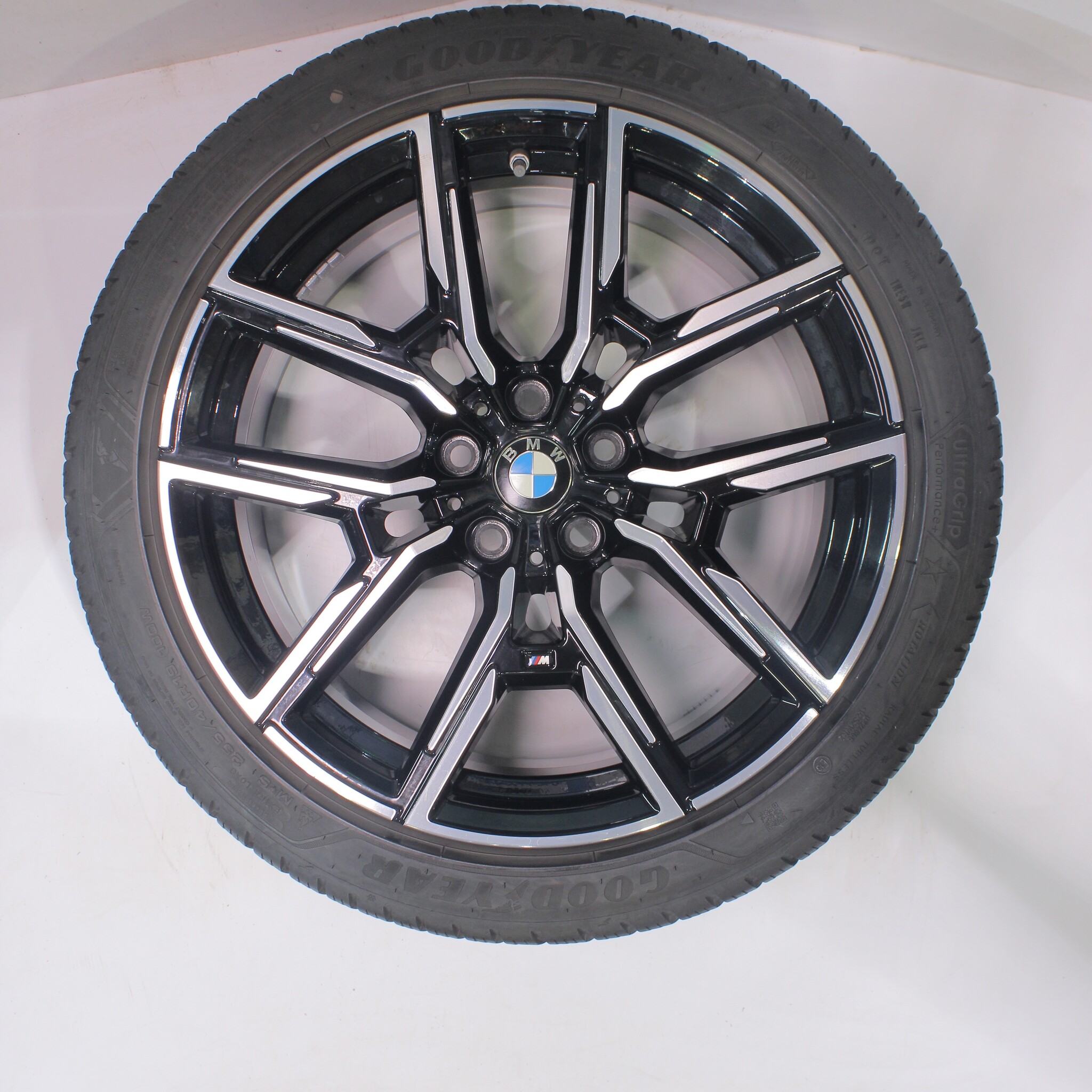 Original BMW wheel set, styling 859M, 19-inch rims with Goodyear ULTRAGRIP PERFORMANCE + winter tires. These rims are original BMW brand rims and suitable for: BMW 4 Series i4 G26.