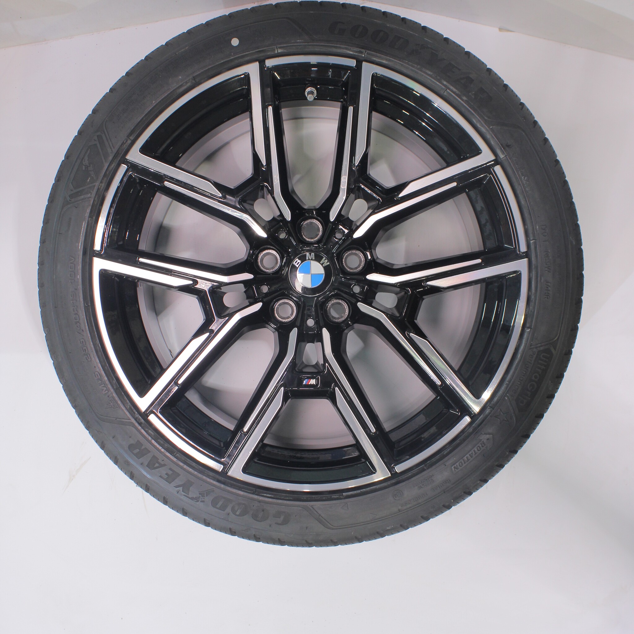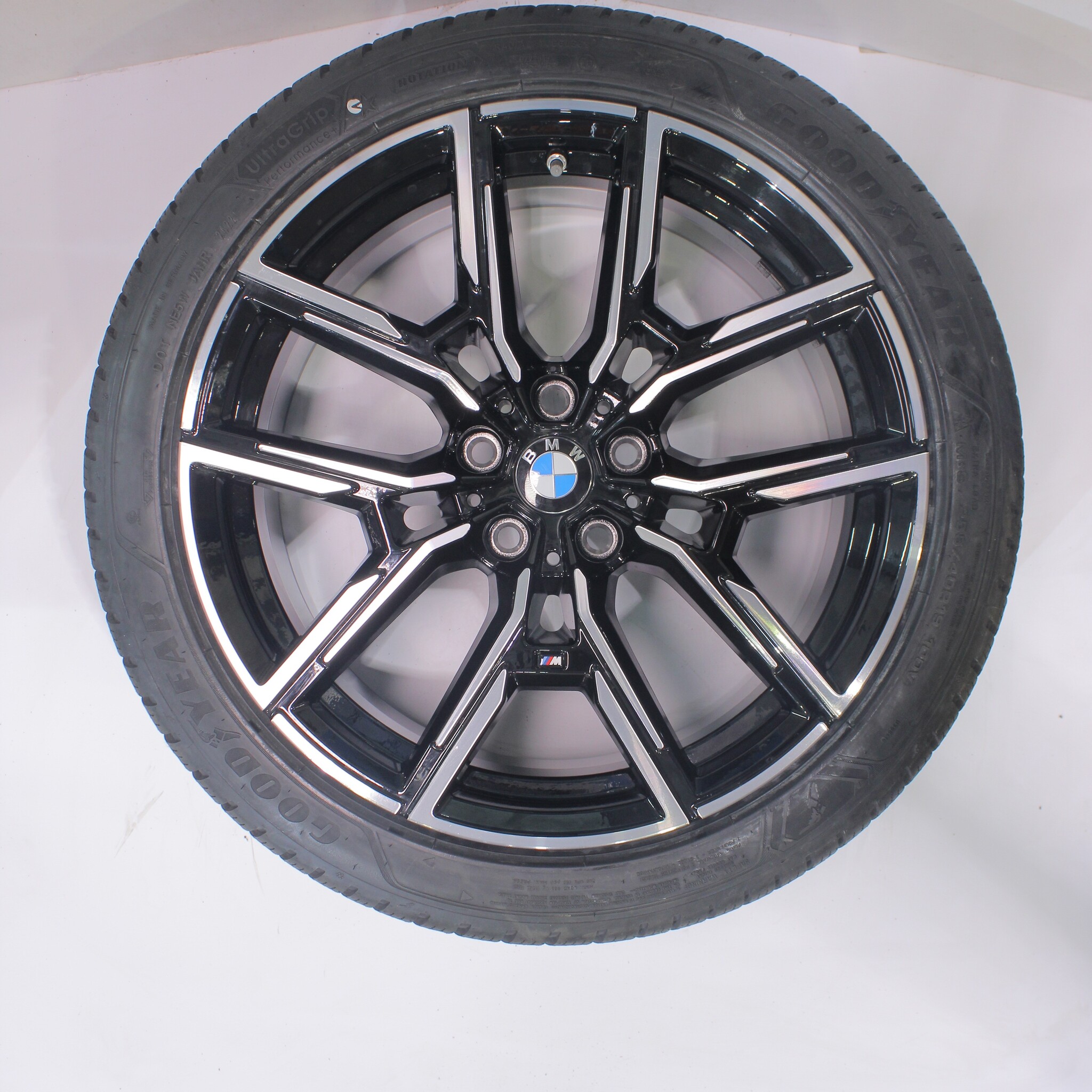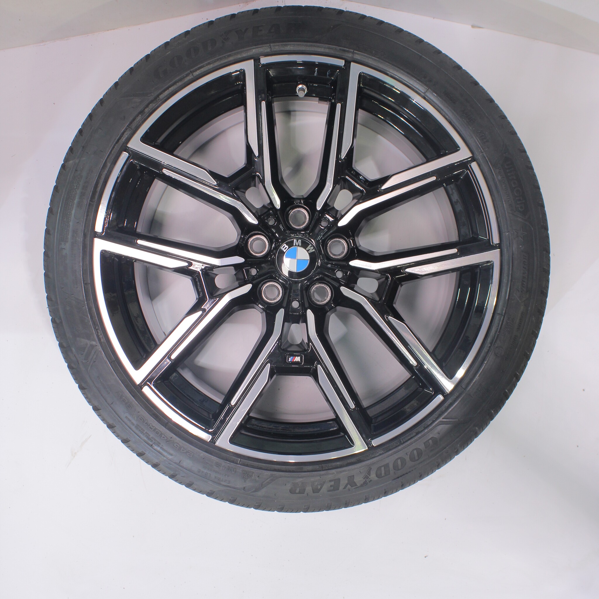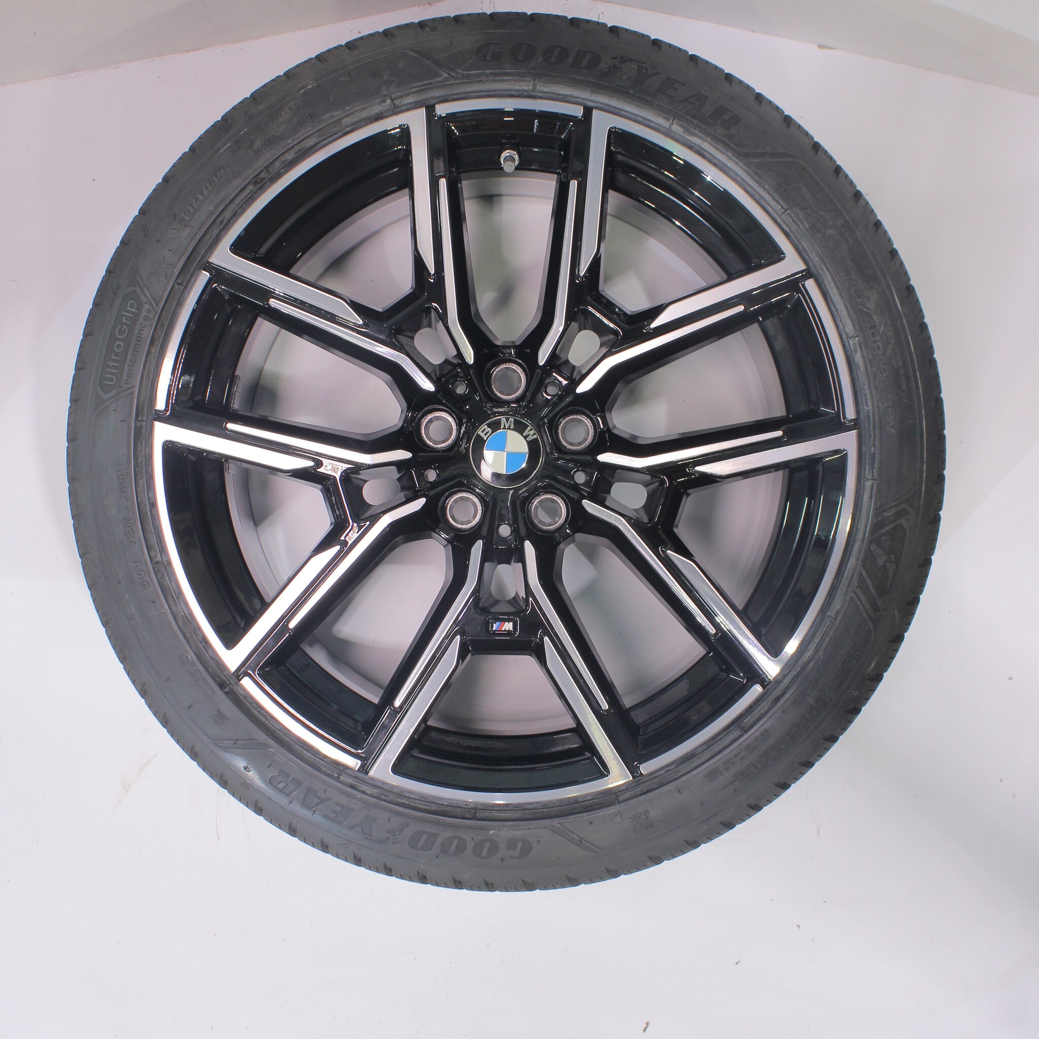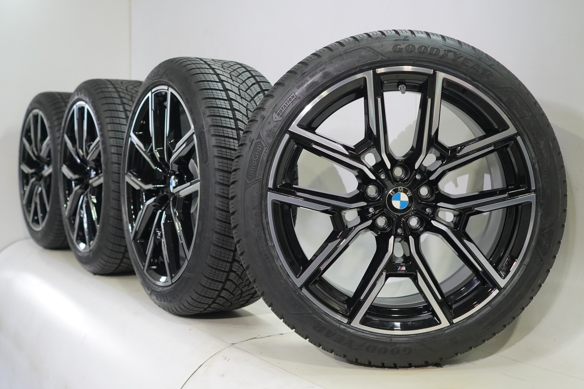 Original BMW wheel set, styling 859M, 19-inch rims with Goodyear ULTRAGRIP PERFORMANCE + winter tires. These rims are original BMW brand rims and suitable for: BMW 4 Series i4 G26.