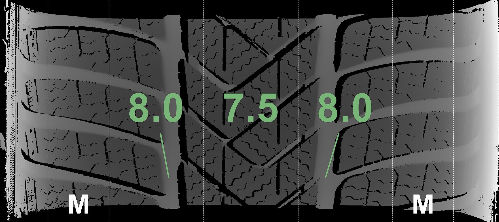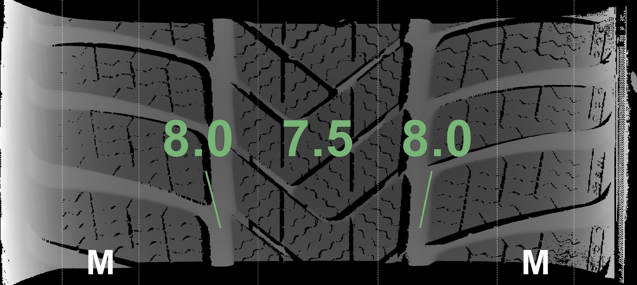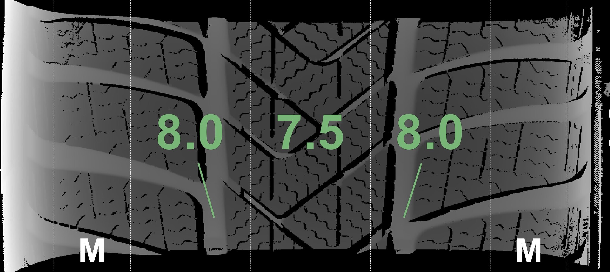 The measured tread depths and details of the rims are shown above.