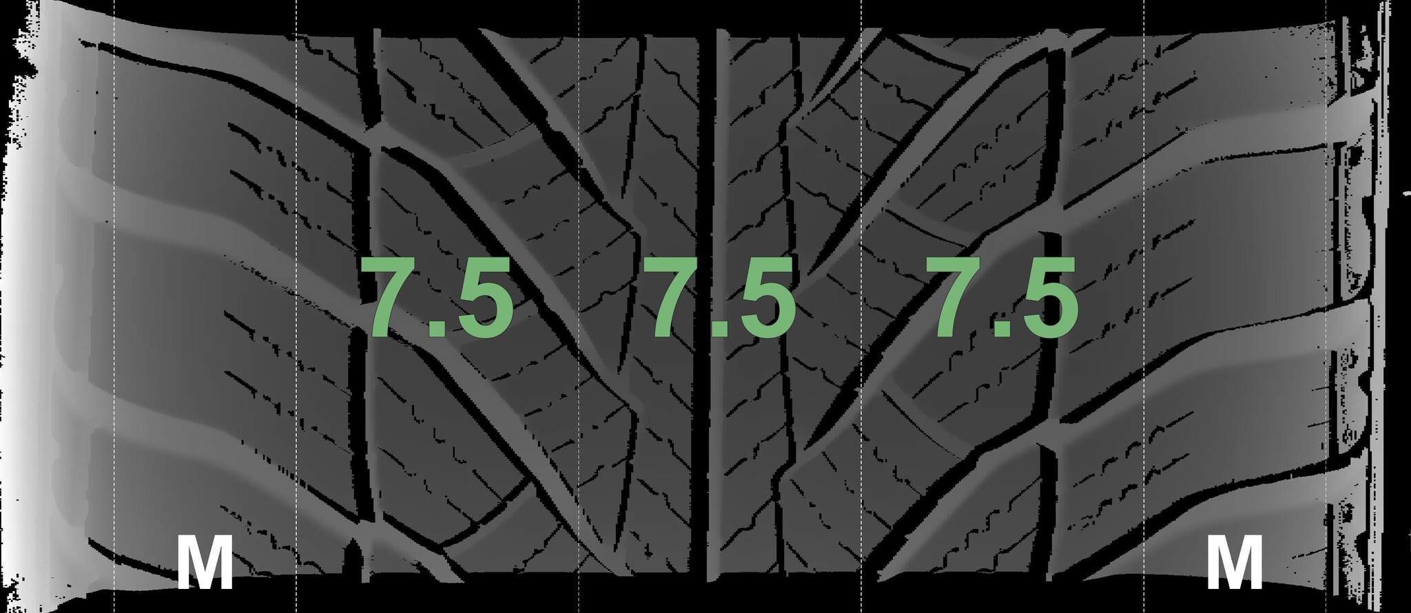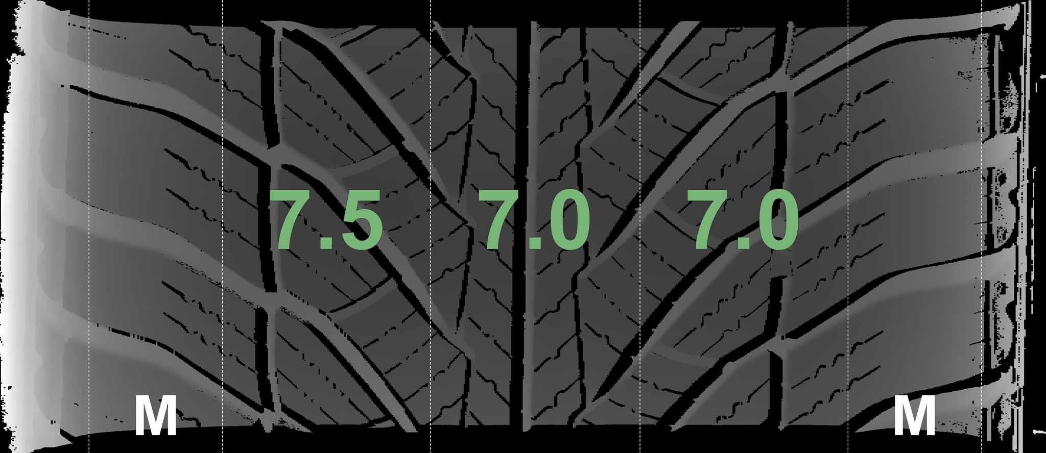| Condition | Profile depth | DOT | Front Right | Used | 7.5 mm | 3920 |