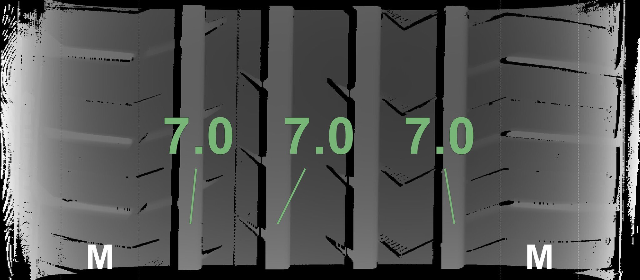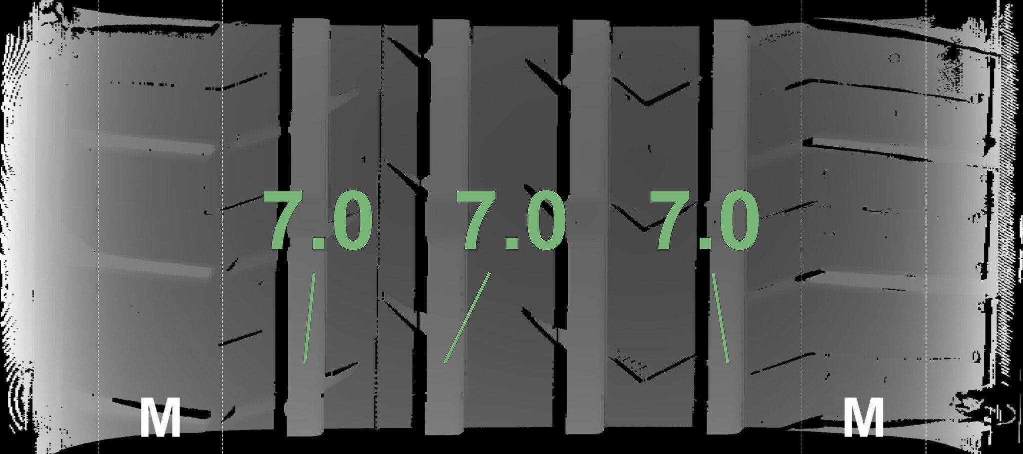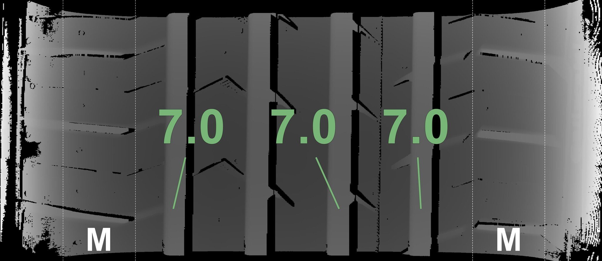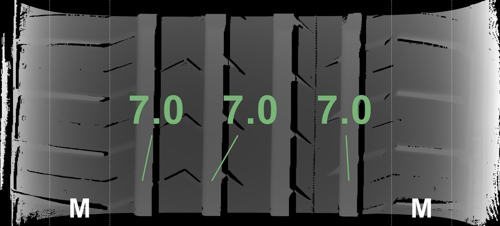 | Condition | Profile depth | DOT | Front Left | Demo nubs still visible | 7.0 mm | 2318 |