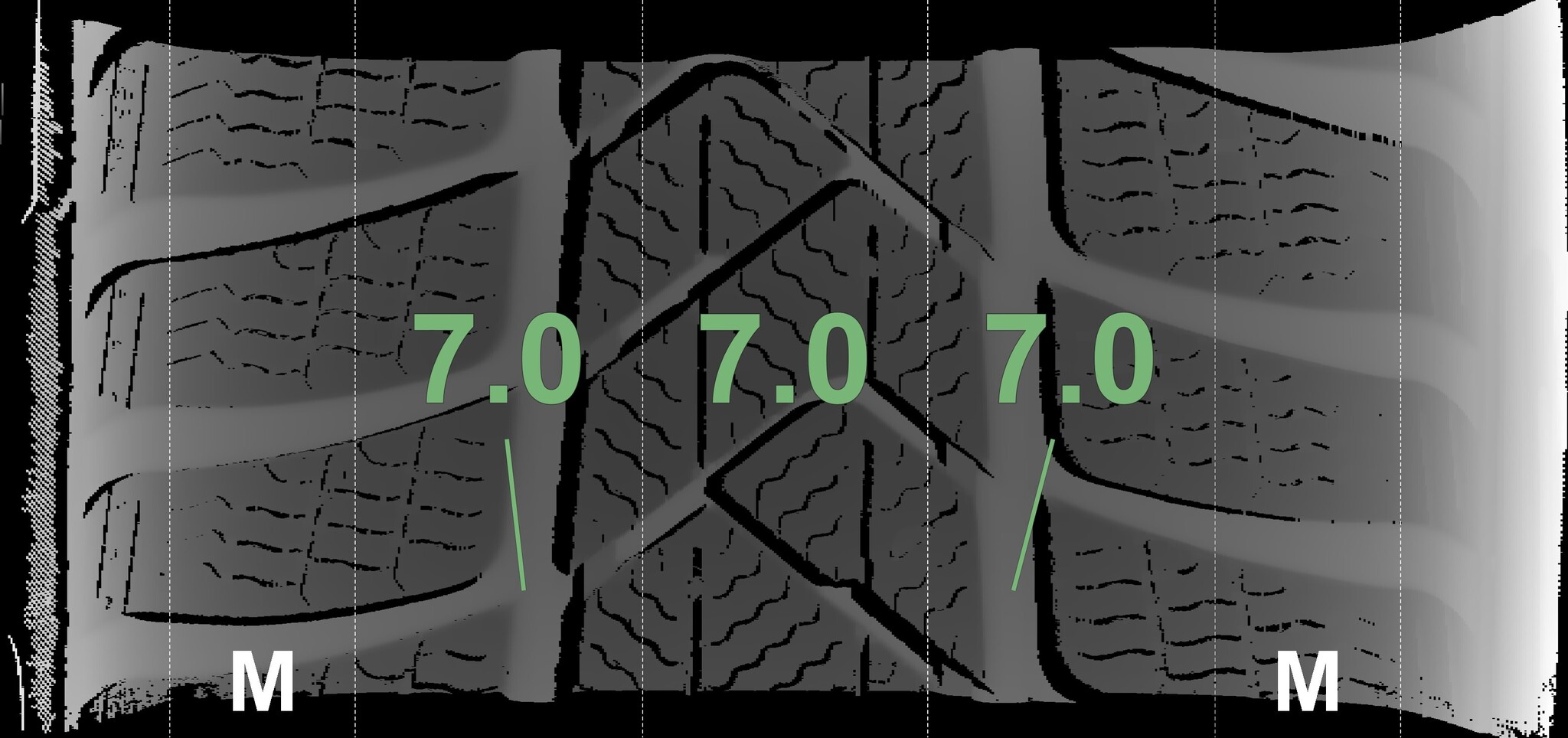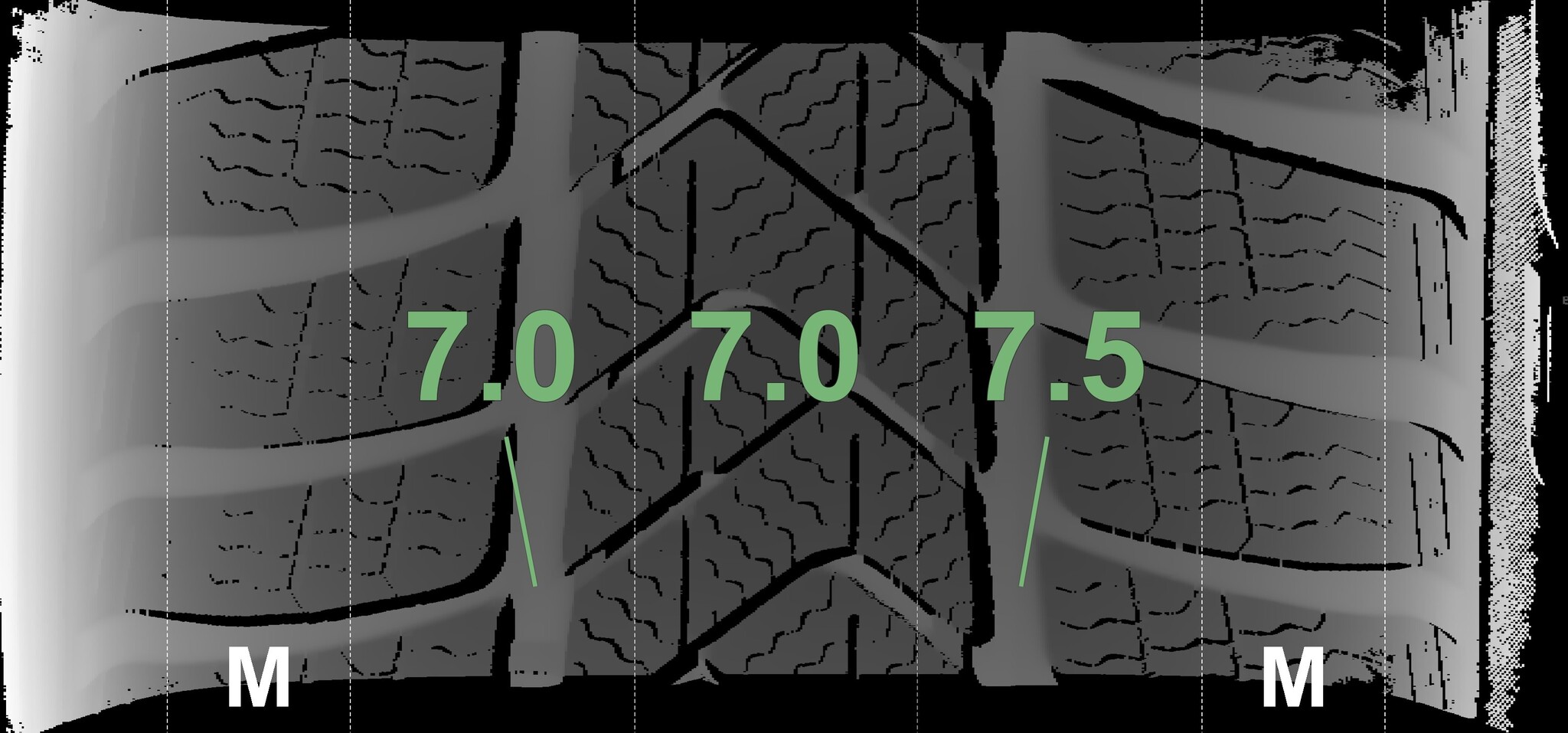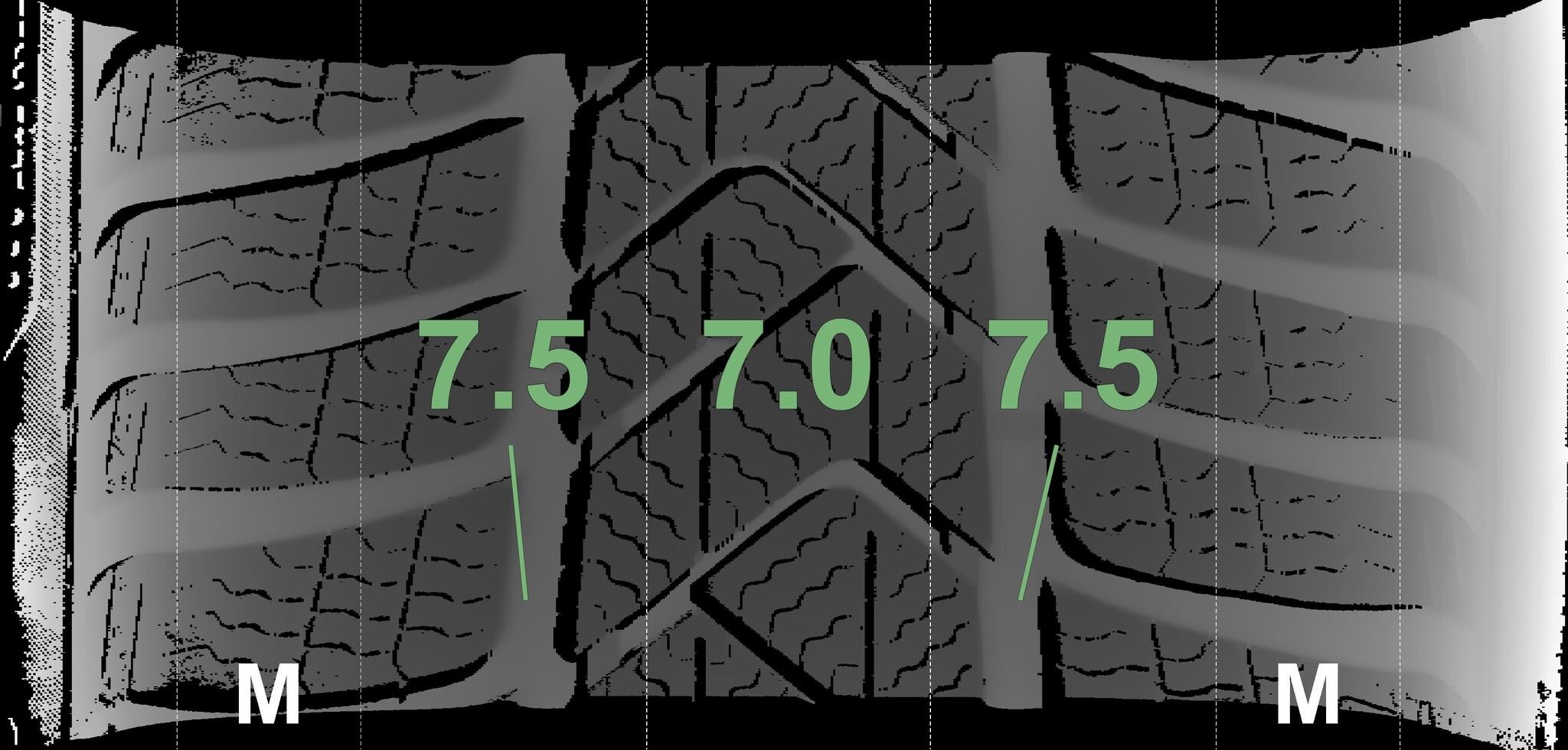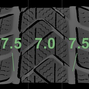 The measured tread depths and the details of the rims are shown above.