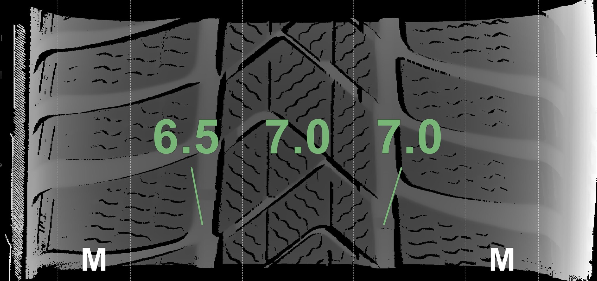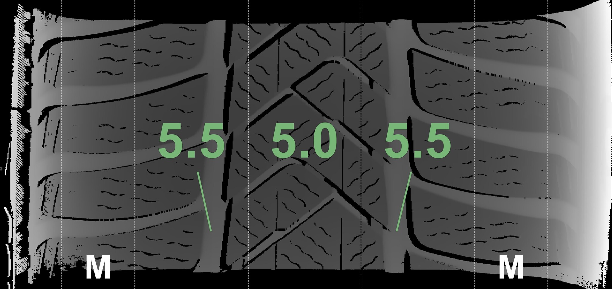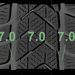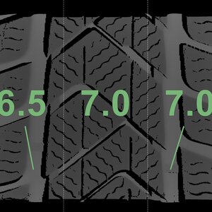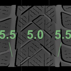 The measured tread depths and the details of the rims are shown above.