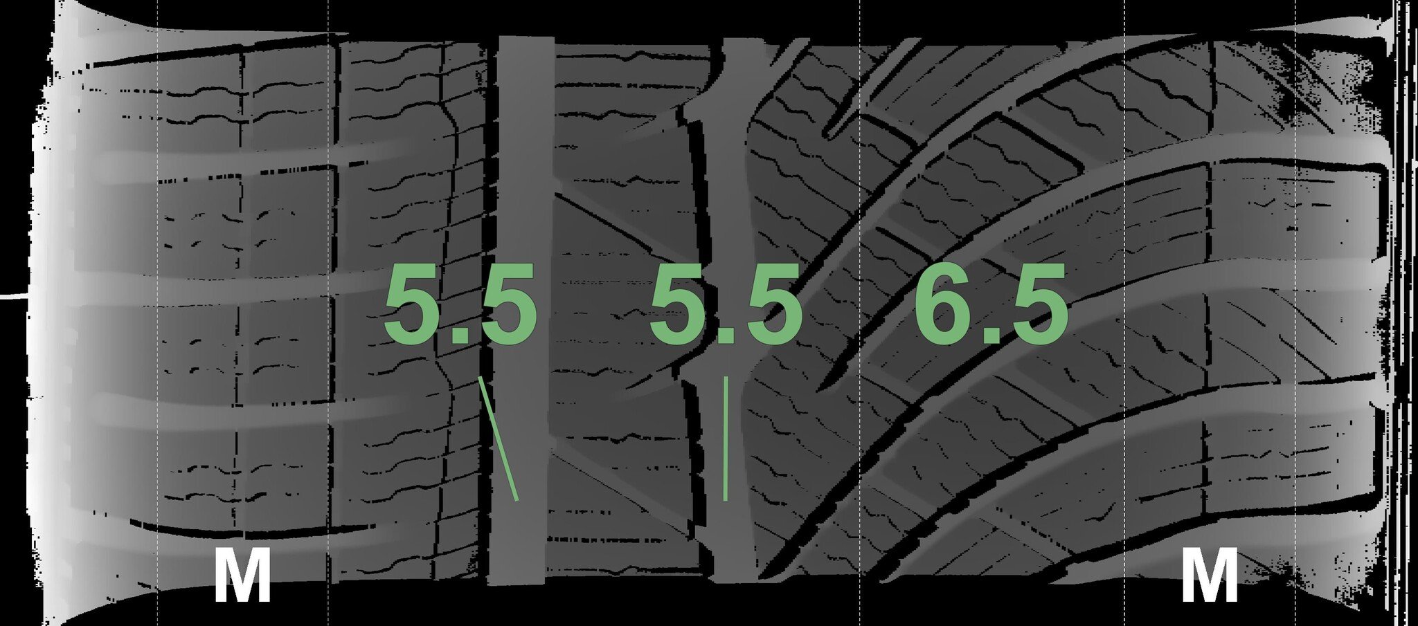 | Condition | Profile depth | DOT | Front Left | Used | 5.5 mm | 2720 |