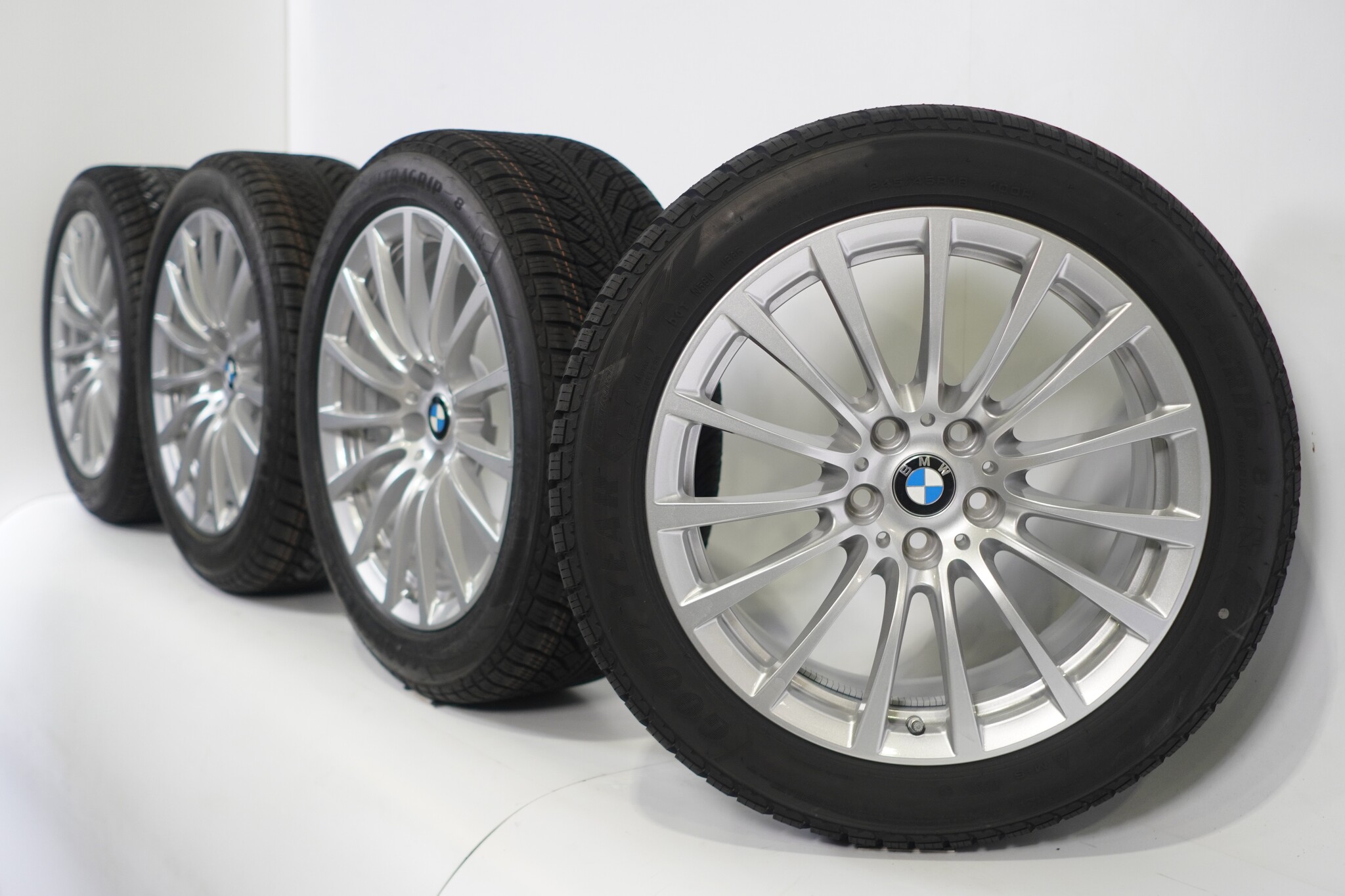 Original wheel set from BMW, styling 619 18 inch rims with Goodyear ULTRA GRIP 8 PERFORMANCE Winter tires. These rims are original rims of the brand BMW and suitable for: BMW 5 series G30 G31 8 series G14 G15 G16.