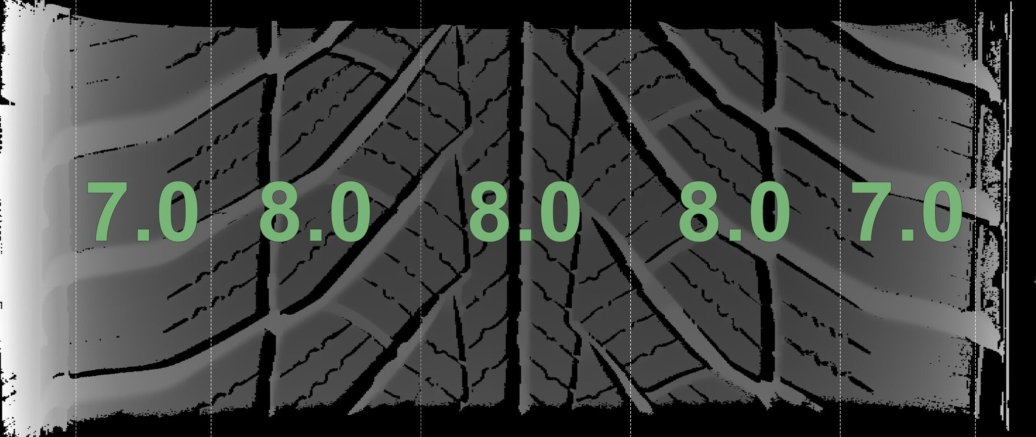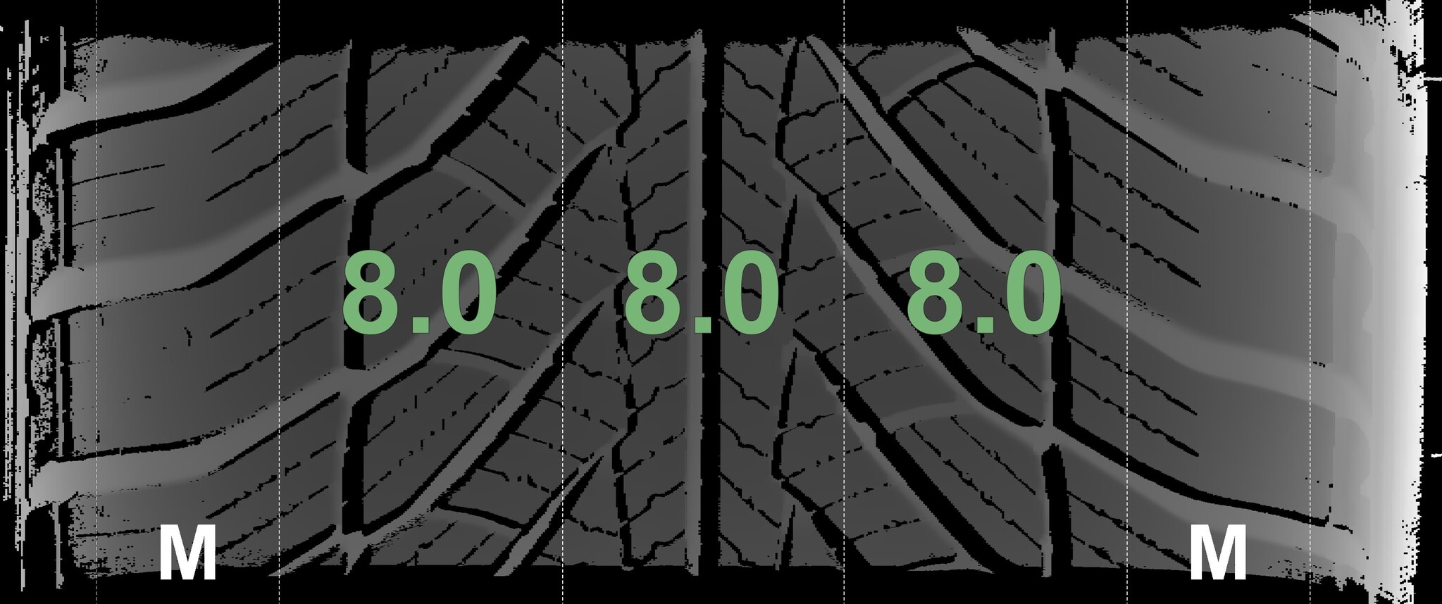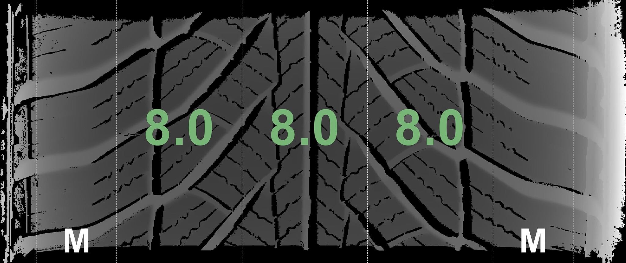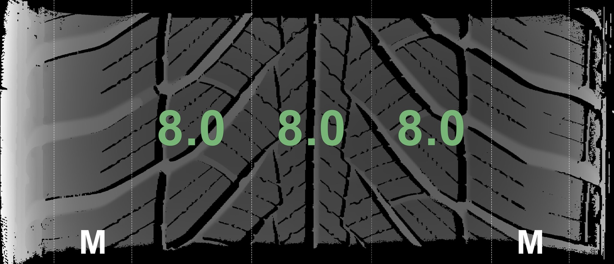 Condition | Profile depth | DOT | Rear Right Used | 8.0 mm | 3421