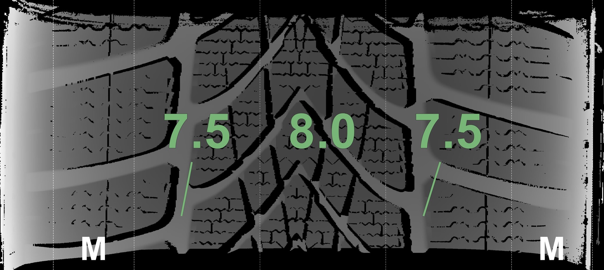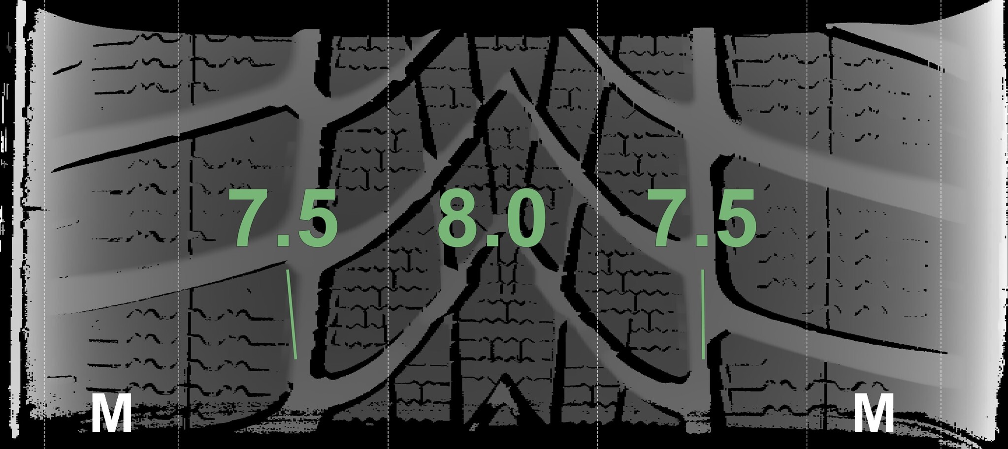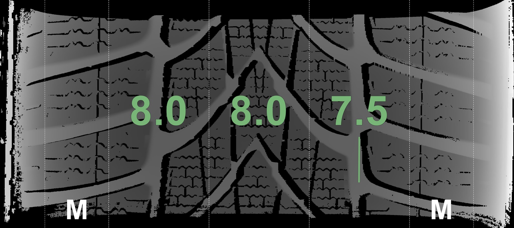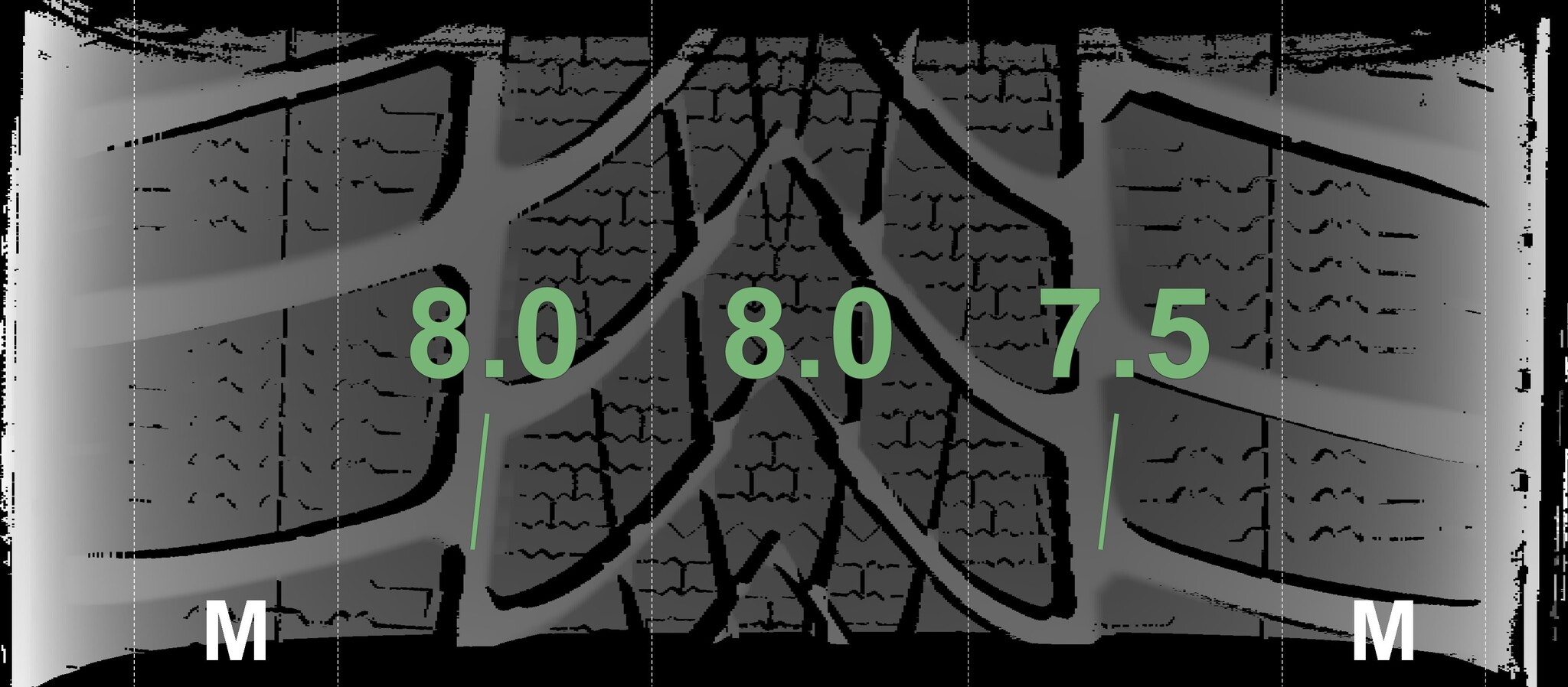 | Condition | Profile depth | DOT | Front Right | New | 7.8 mm | 4517 |