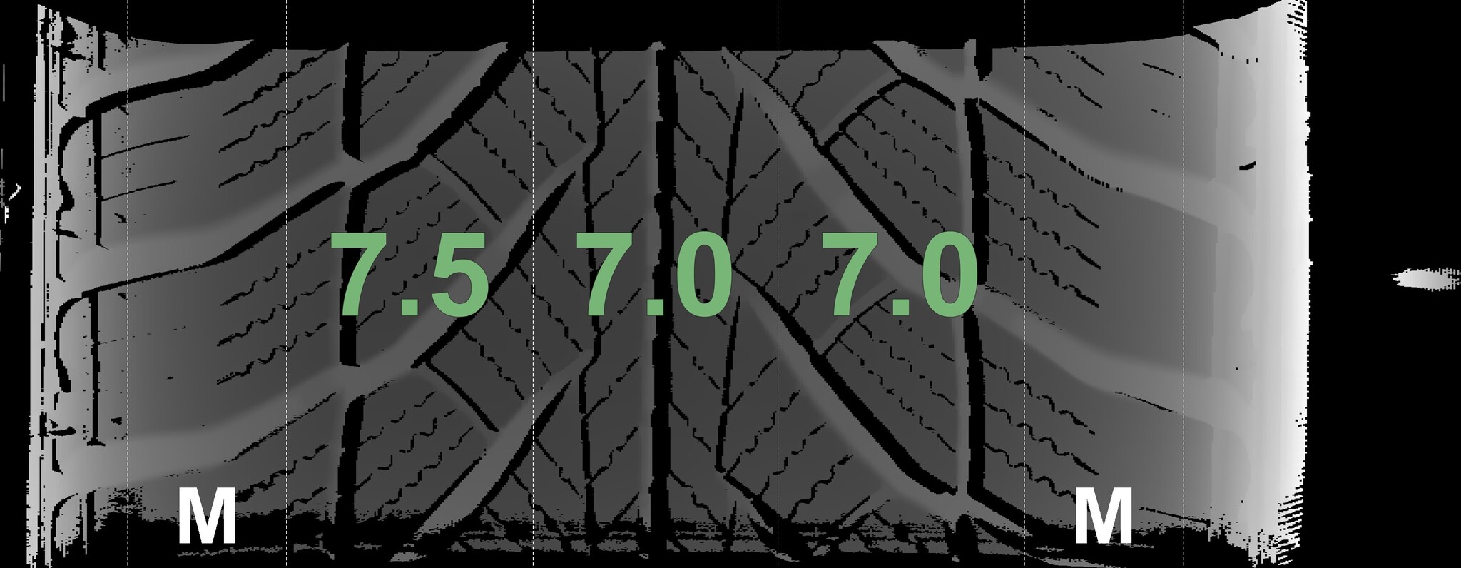| Condition | Profile depth | DOT | Rear Left | Used | 7.5 mm | 1519 |