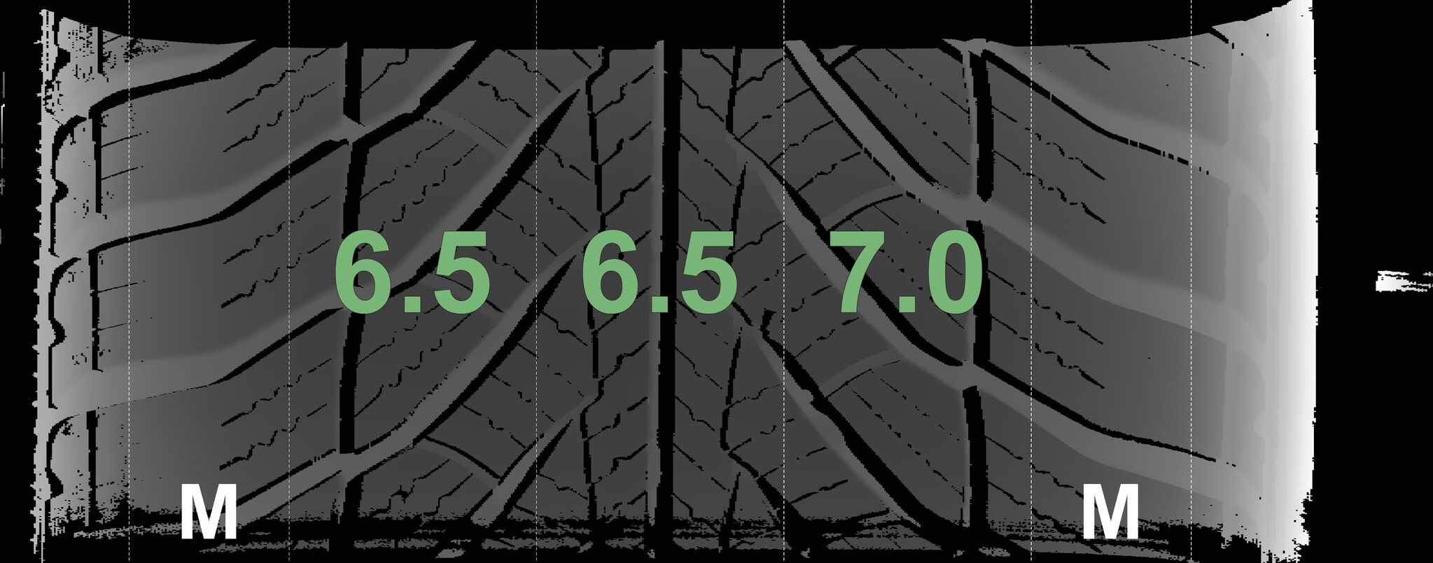 | Condition | Profile depth | DOT | Front Right | Used | 6.5 mm | 4018 |