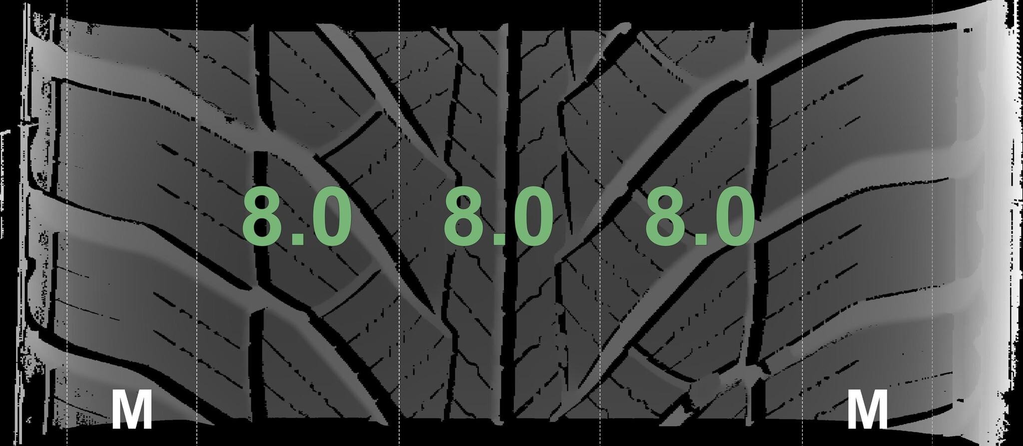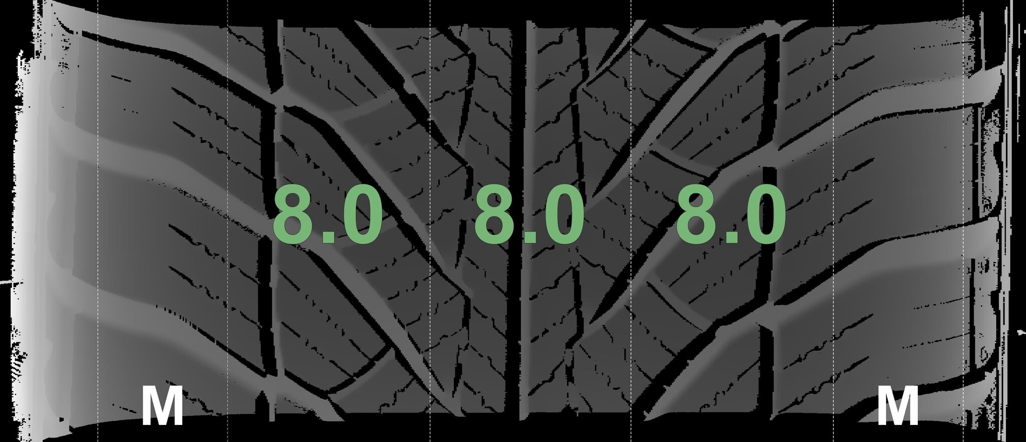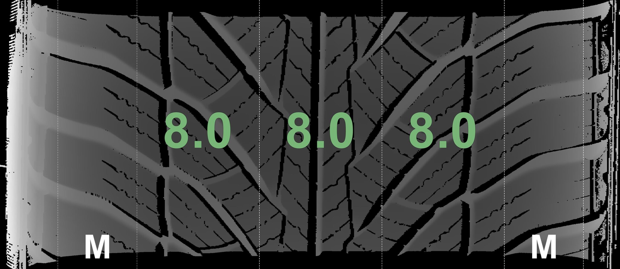 | Condition | Profile depth | DOT | Front Left | Used | 8.0 mm | 3620 |