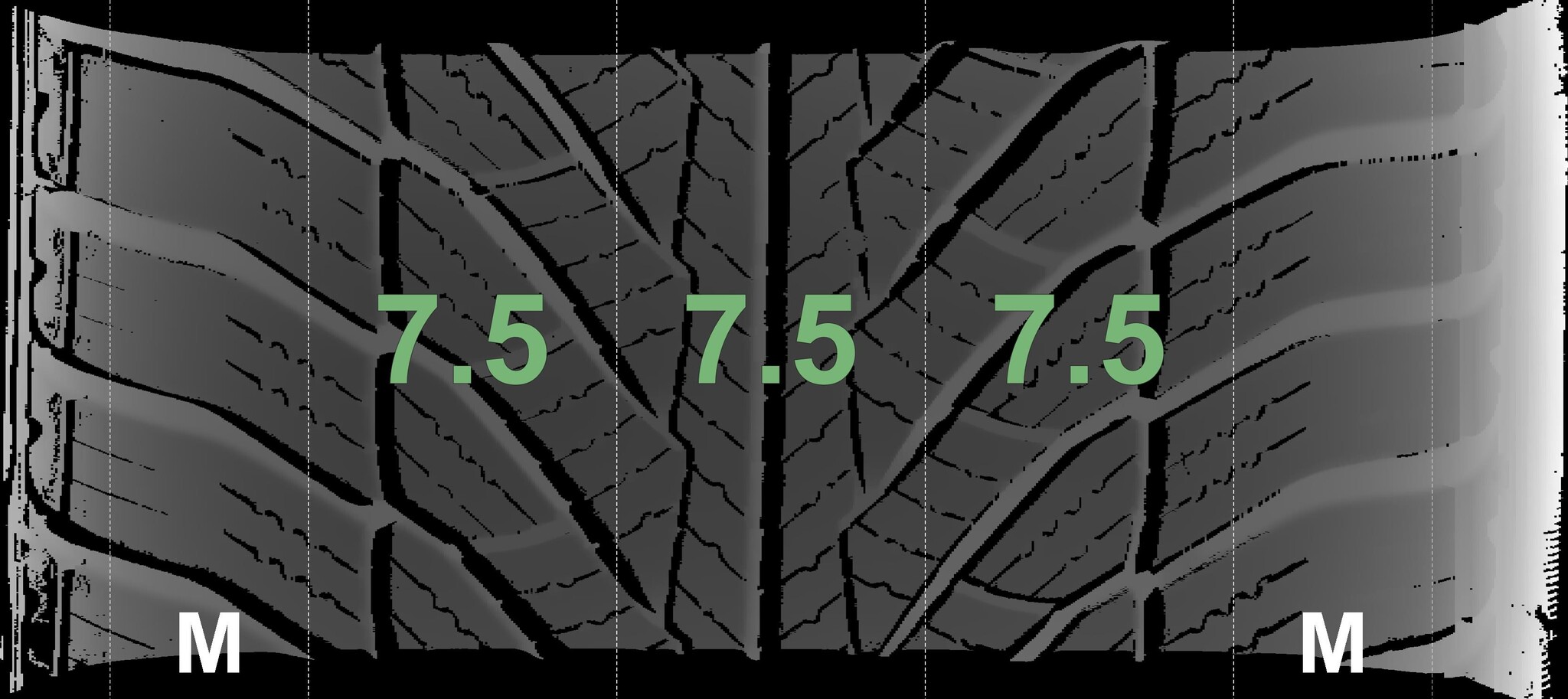 | Condition | Profile depth | DOT | Front Right | Used | 7.5 mm | 3620 |