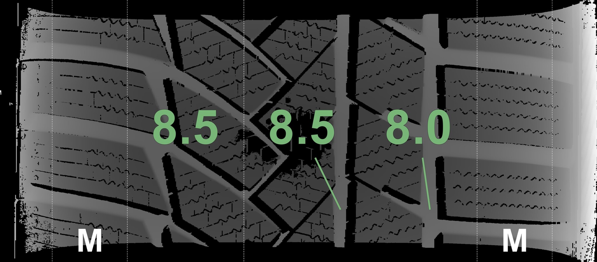Condition | Profile depth | DOT | Front Right | New | 8.0 mm | 2119 |