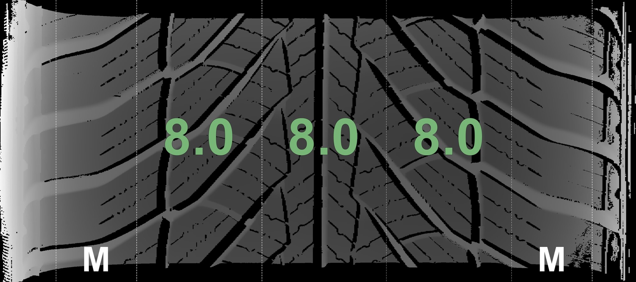 Condition | Profile depth | DOT | Front Right | Used | 8.0 mm | 3520 |