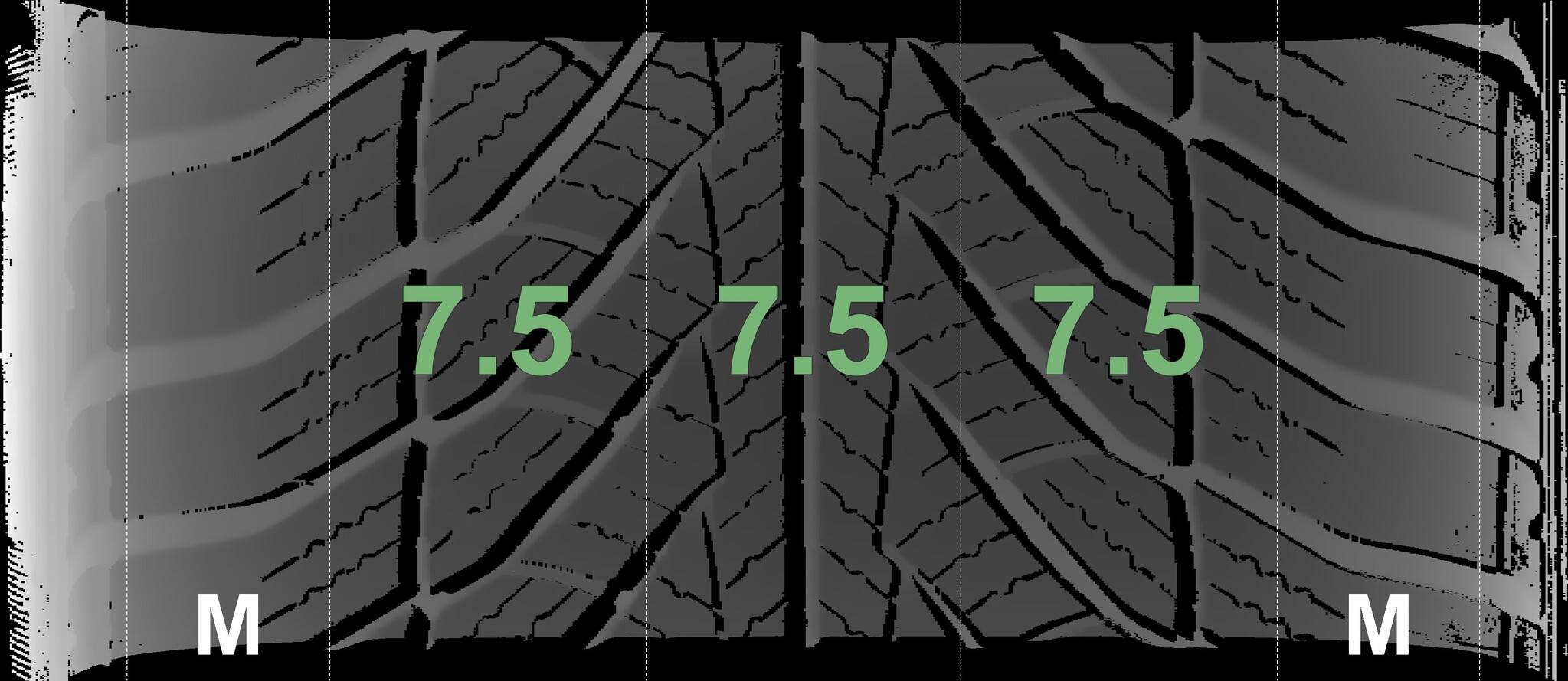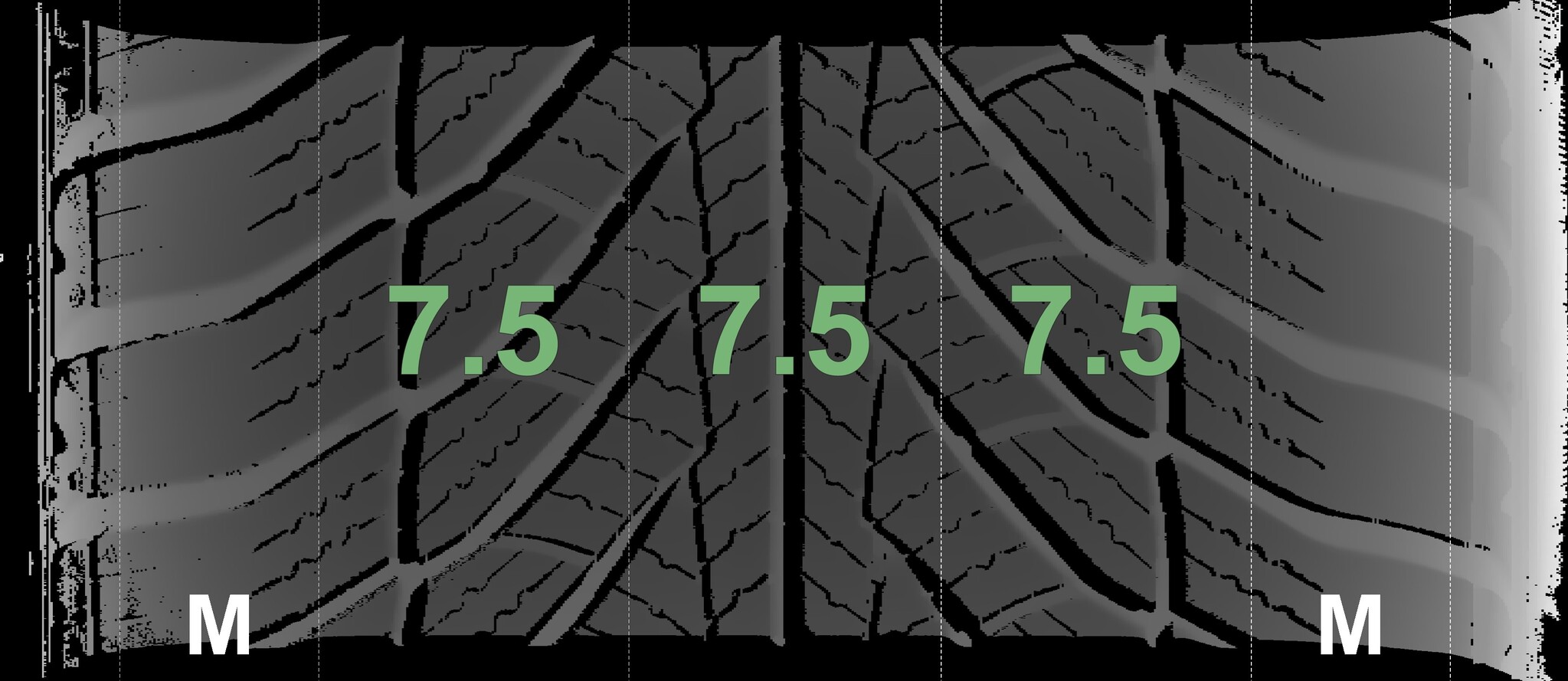 Condition | Profile depth | DOT | Front Right | Used | 7.5 mm | 3620 |