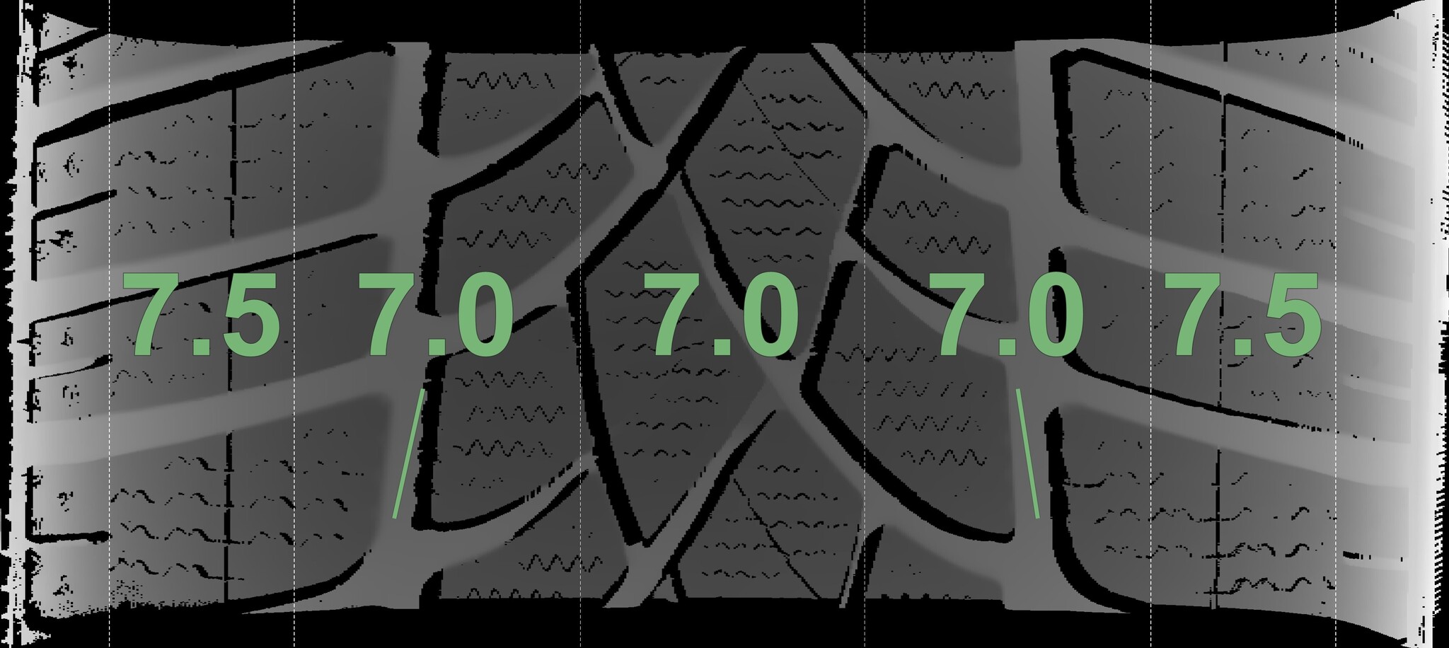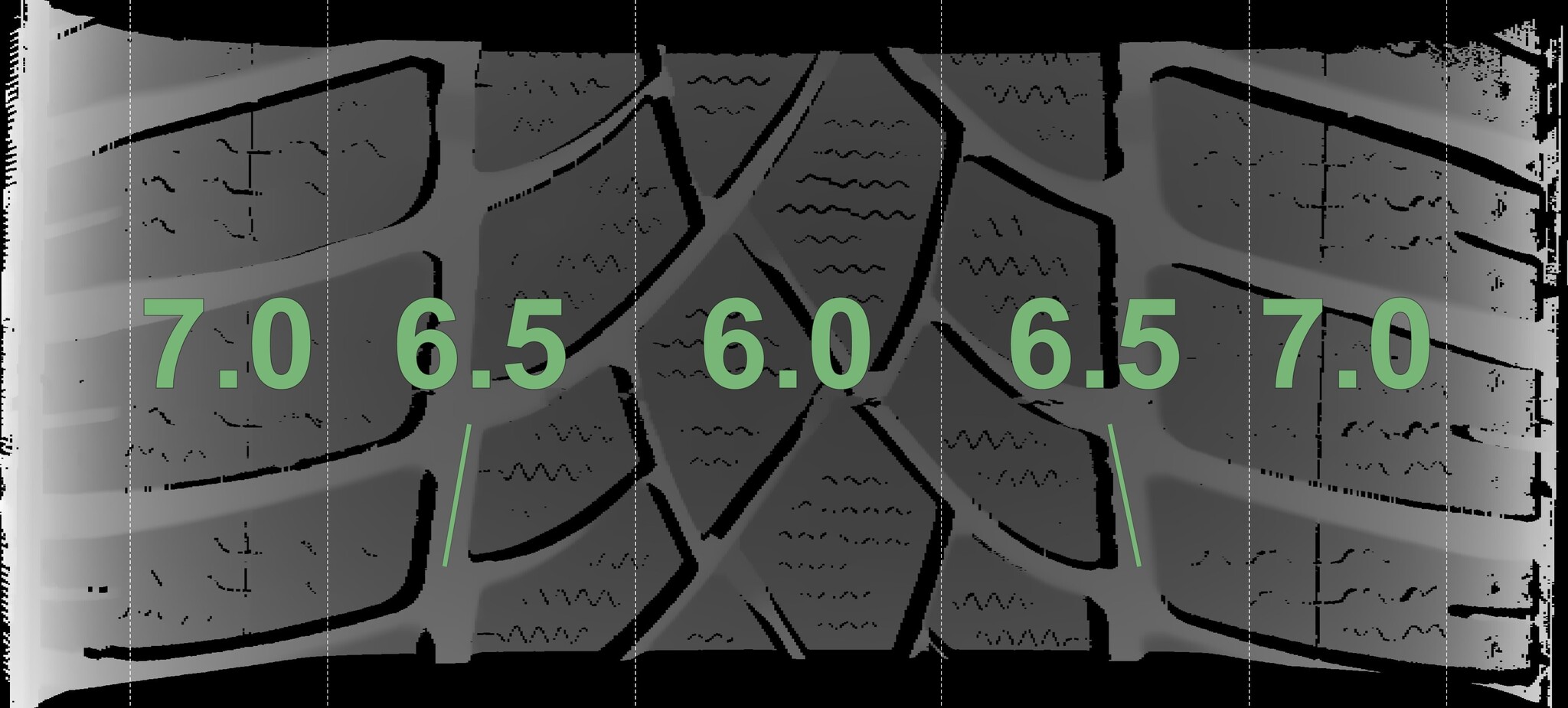 | Condition | Profile depth | DOT | Front Left | Used | 6.0 mm | 2523 |