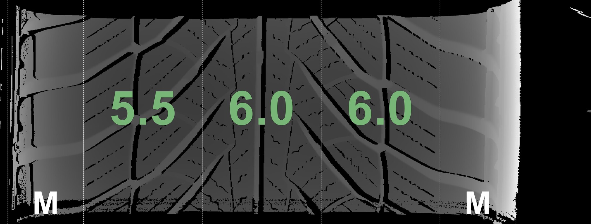 | Condition | Profile depth | DOT | Front Right | Used | 5.8 mm | 4117 |