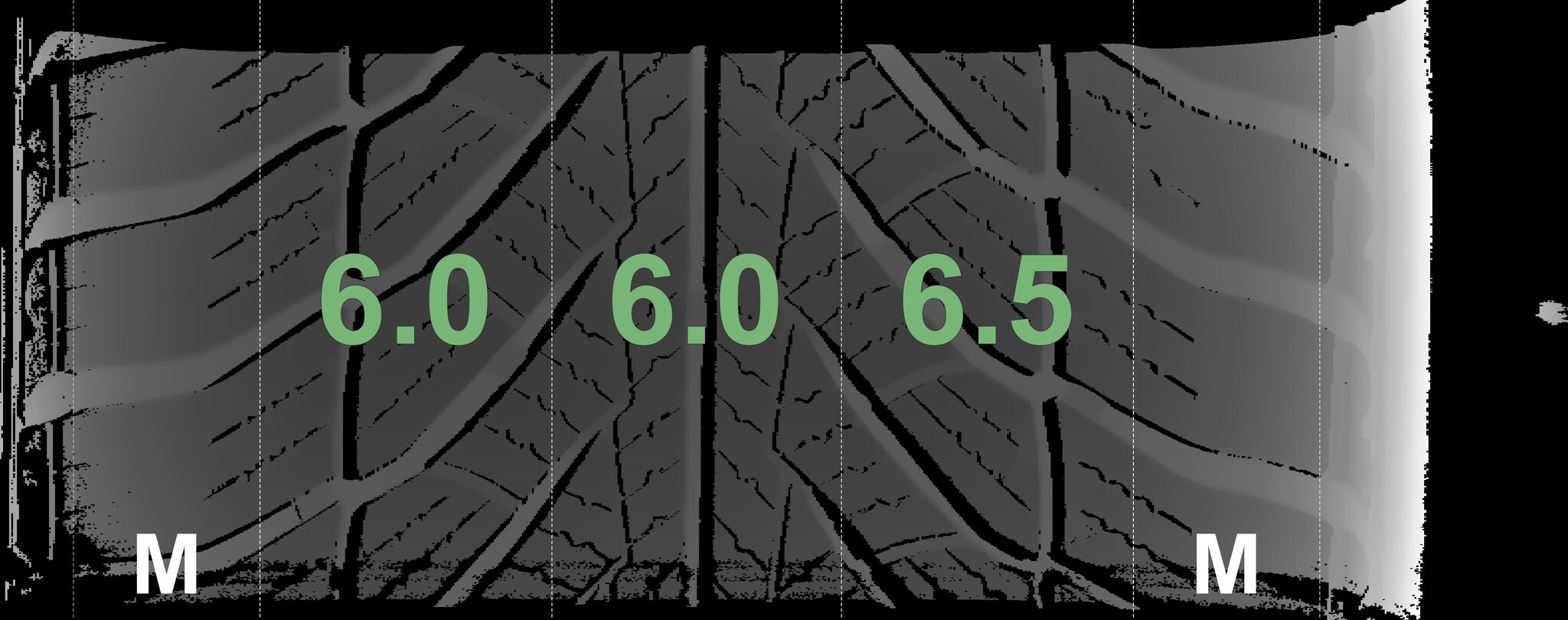 | Condition | Profile depth | DOT | Rear Left | Used | 6.5 mm | 4317 |