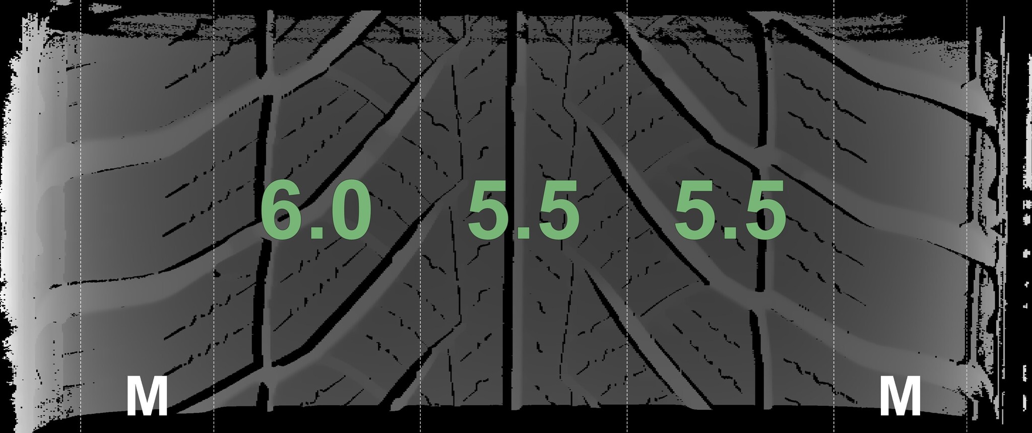 | Condition | Profile depth | DOT | Front Left | Used | 5.7 mm | 4317 |