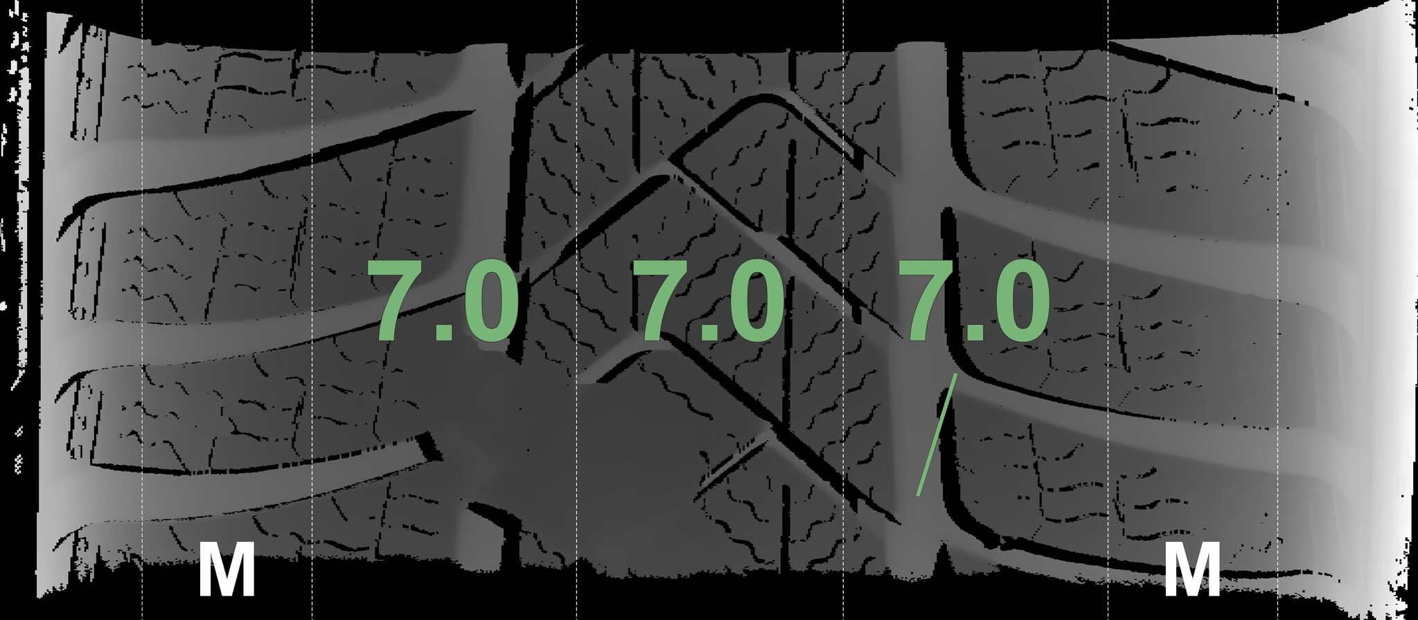 | Condition | Profile depth | DOT | Front Left | Used | 6.7 mm | 0623 |