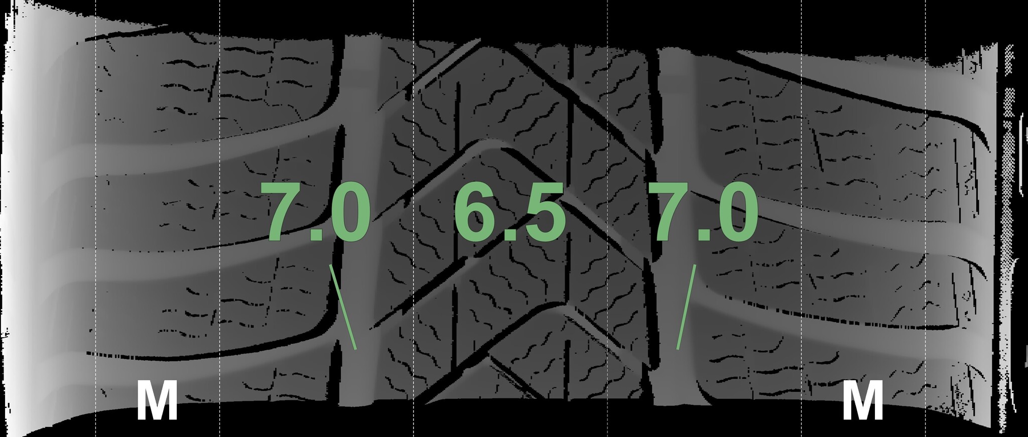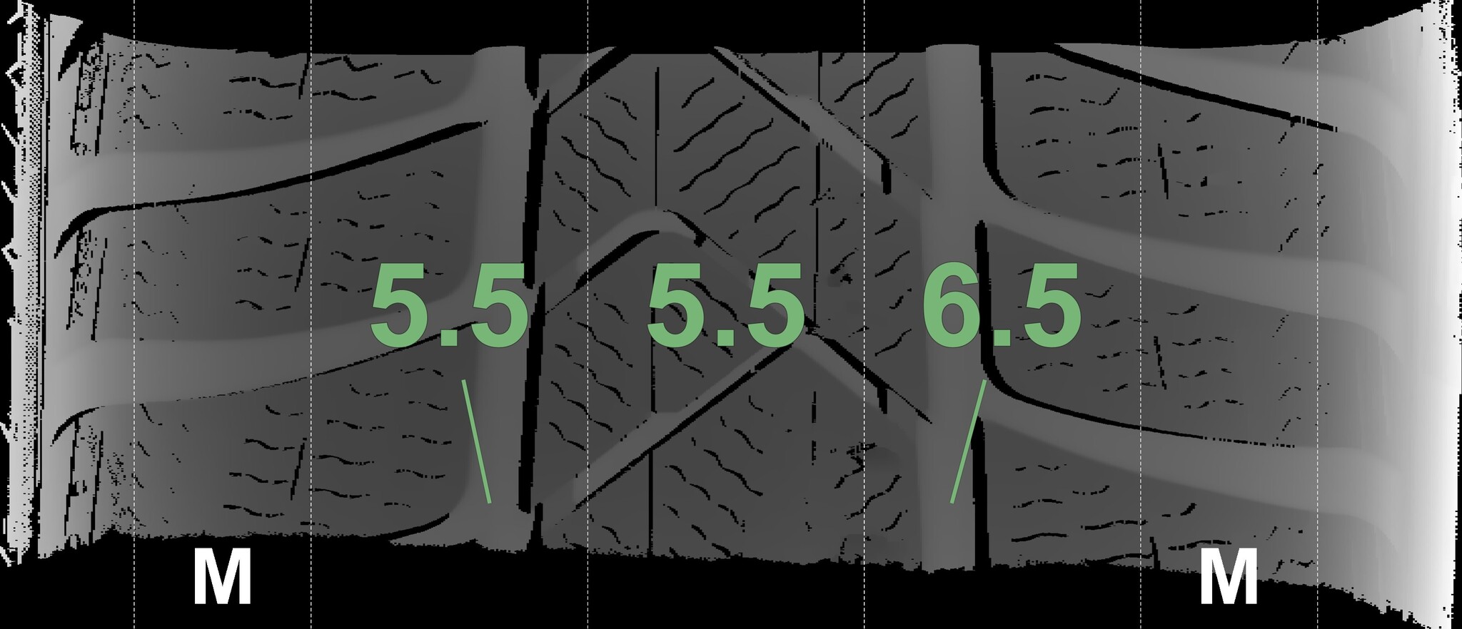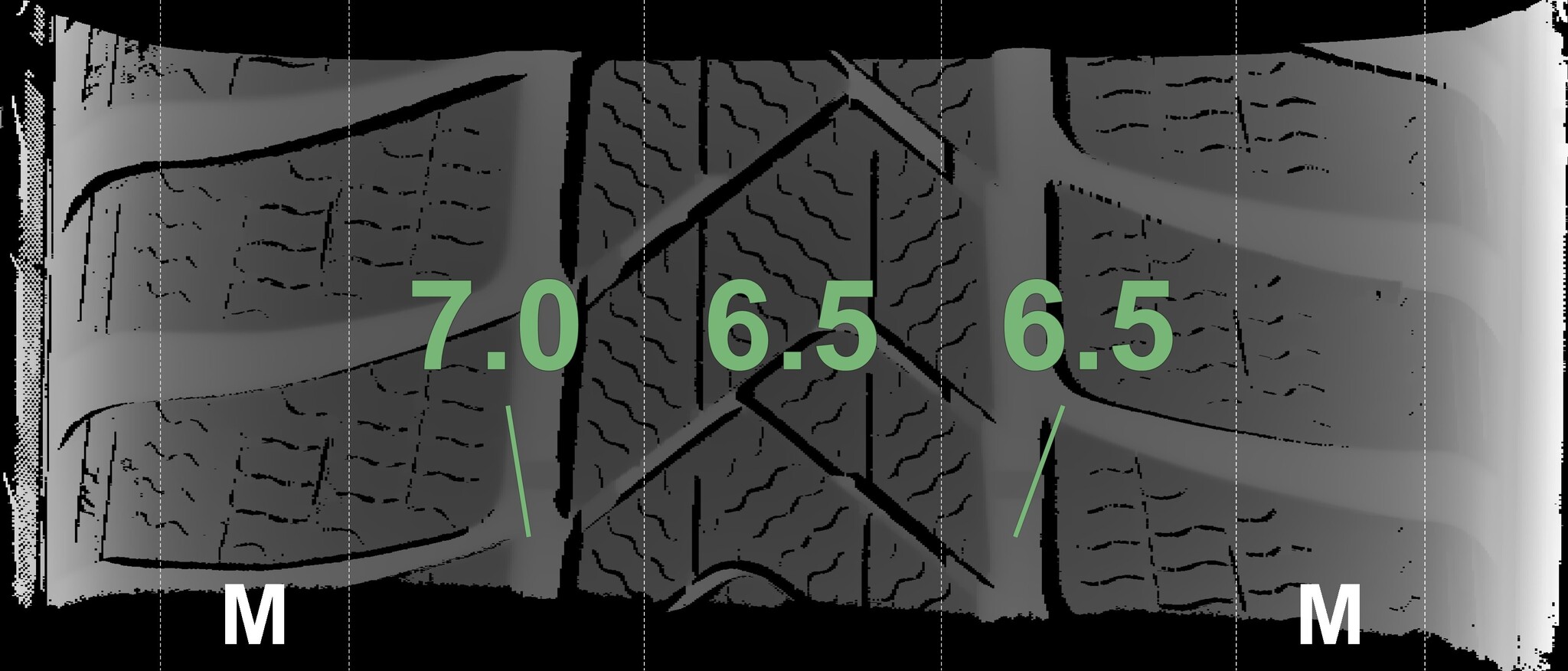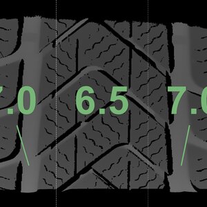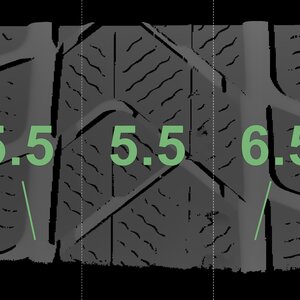 The measured tread depths and the details of the rims are shown above.