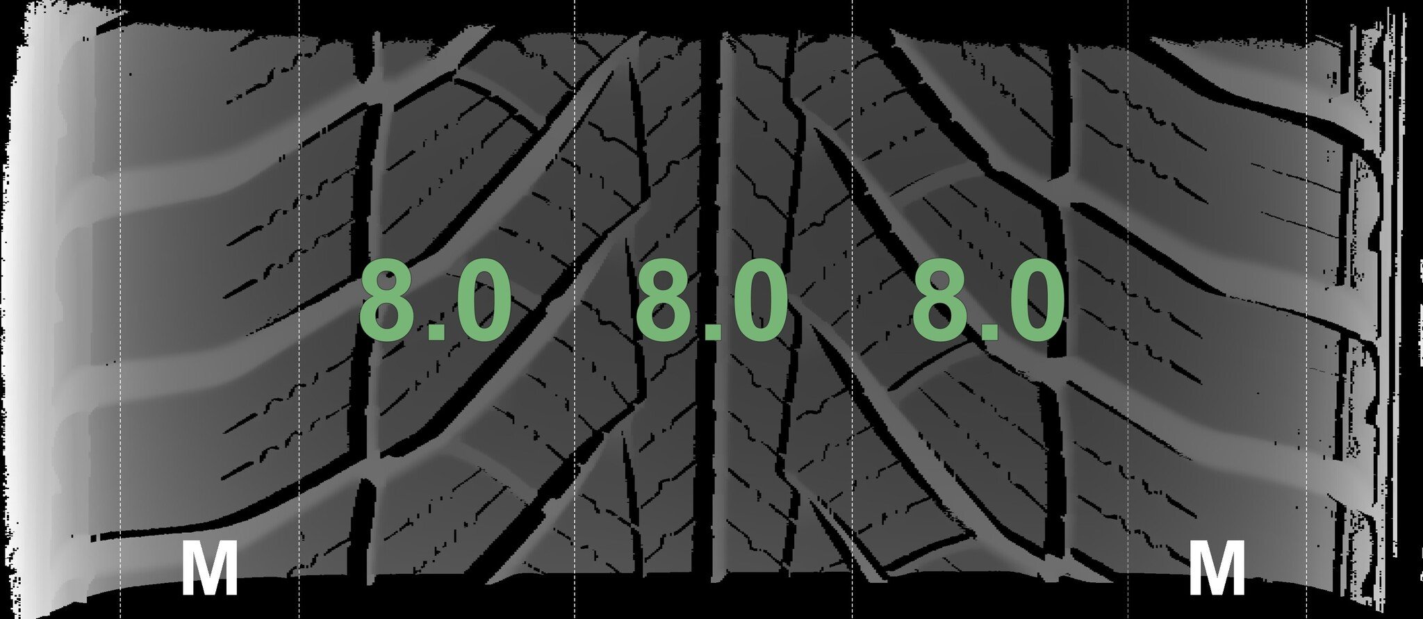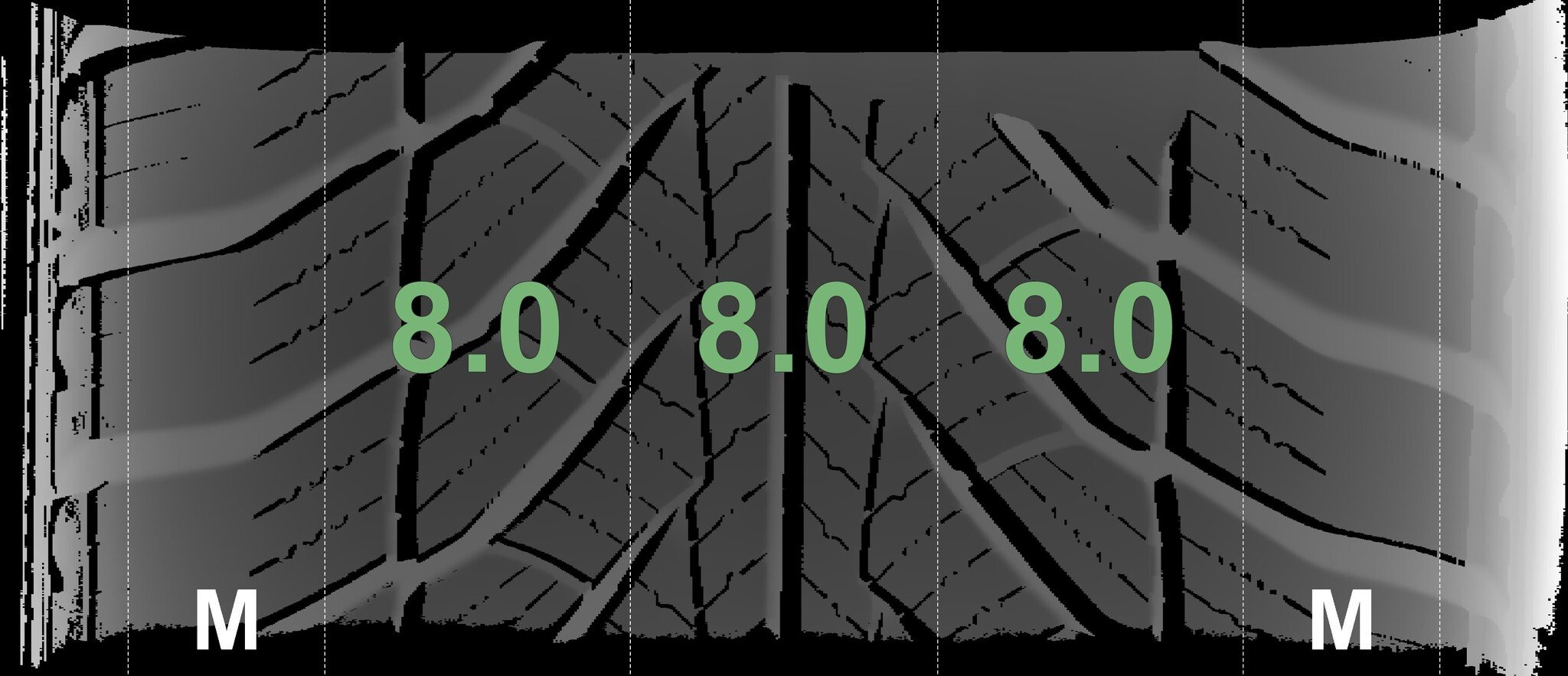 Condition | Profile depth | DOT | Rear Left Used | 8.0 mm | 3620