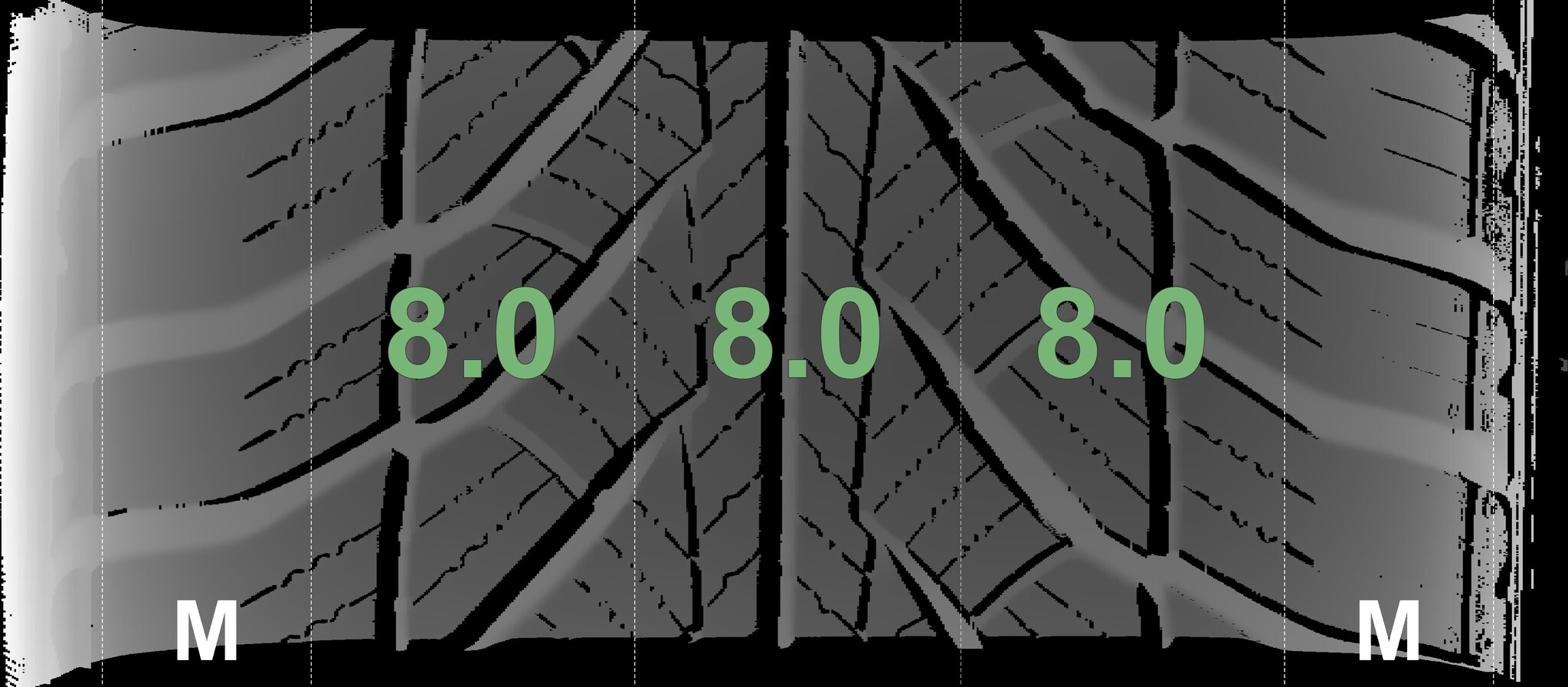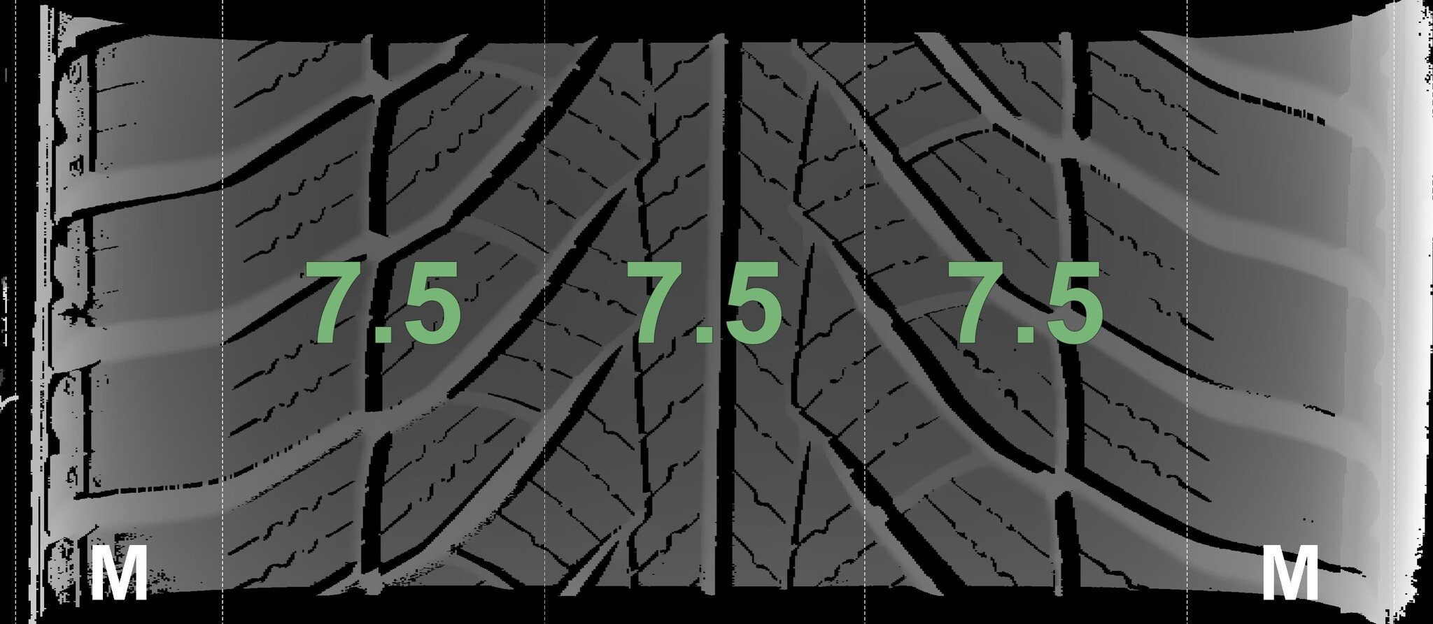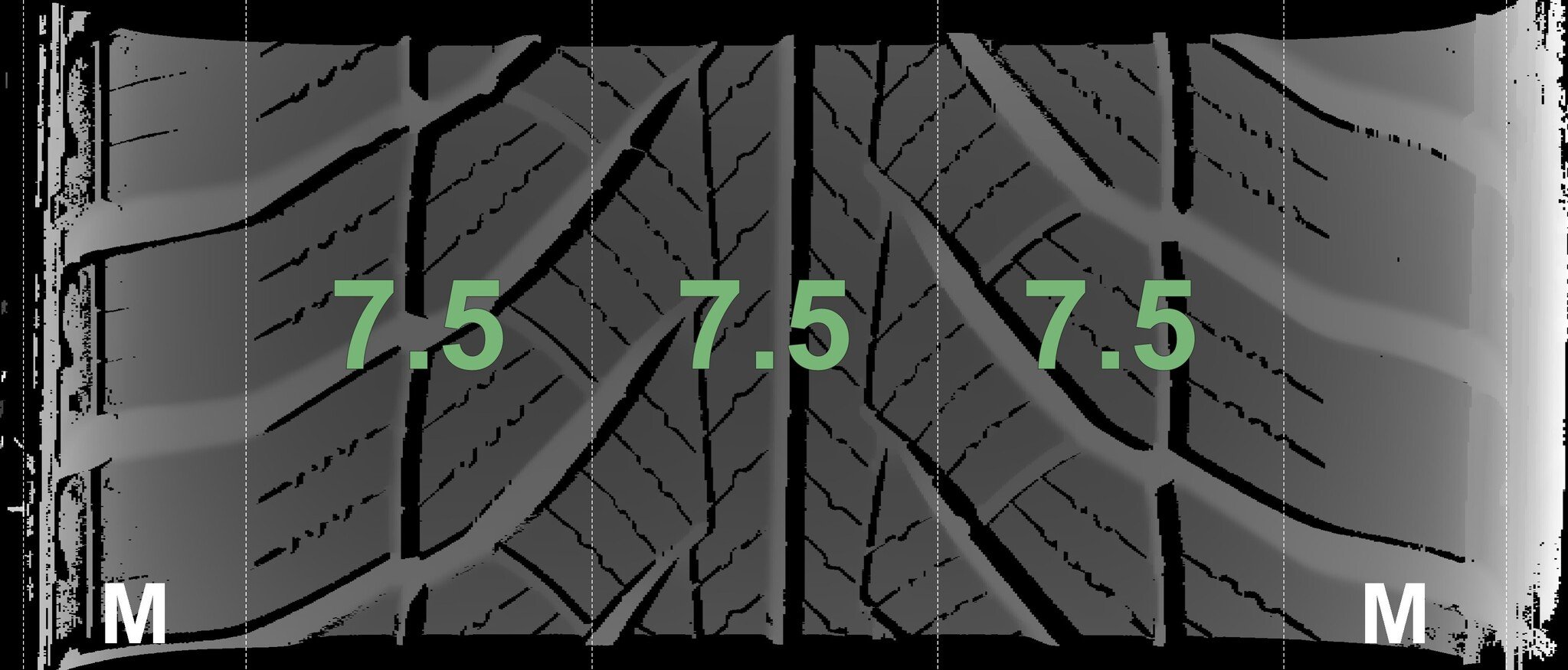 | Condition | Profile depth | DOT | Front Right | Used | 7.5 mm | 2421 |