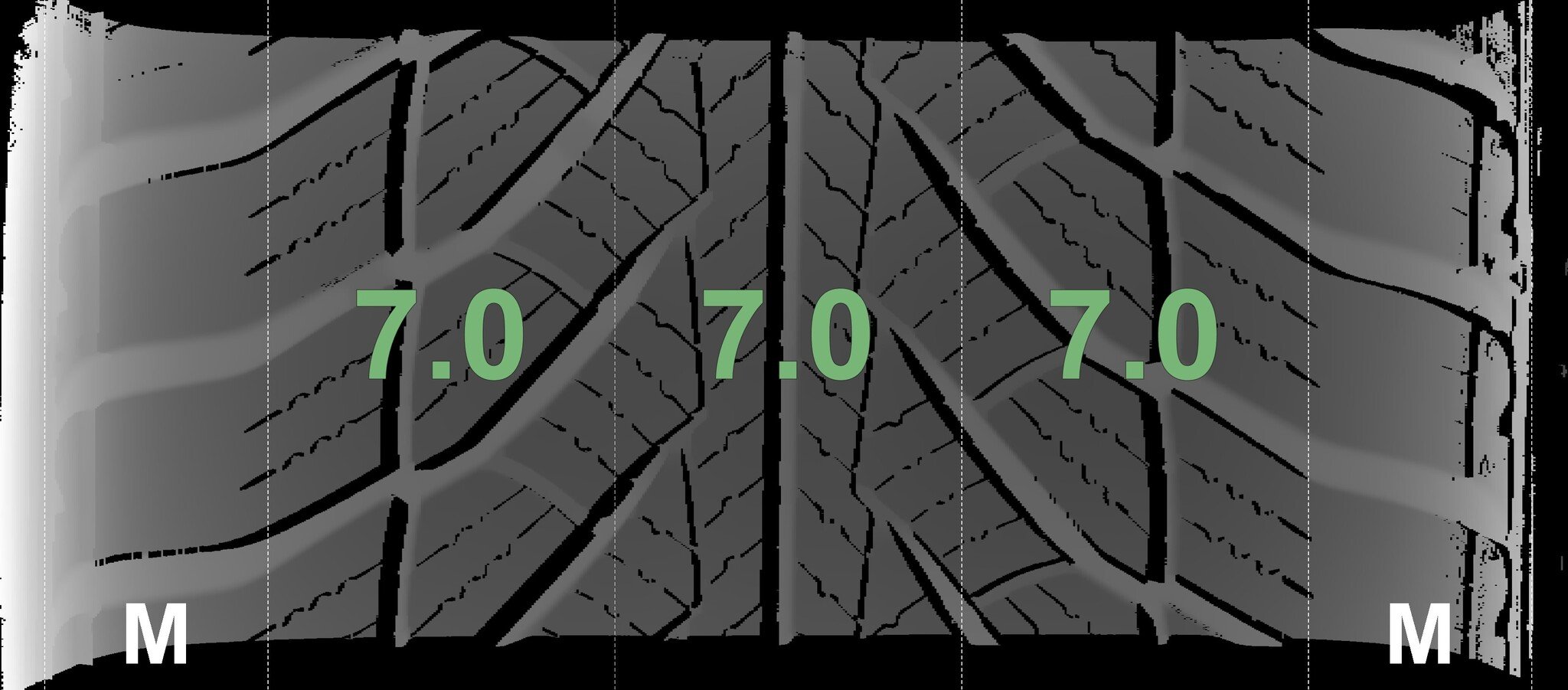 | Condition | Profile depth | DOT | Front Left | Used | 7.0 mm | 2421 |