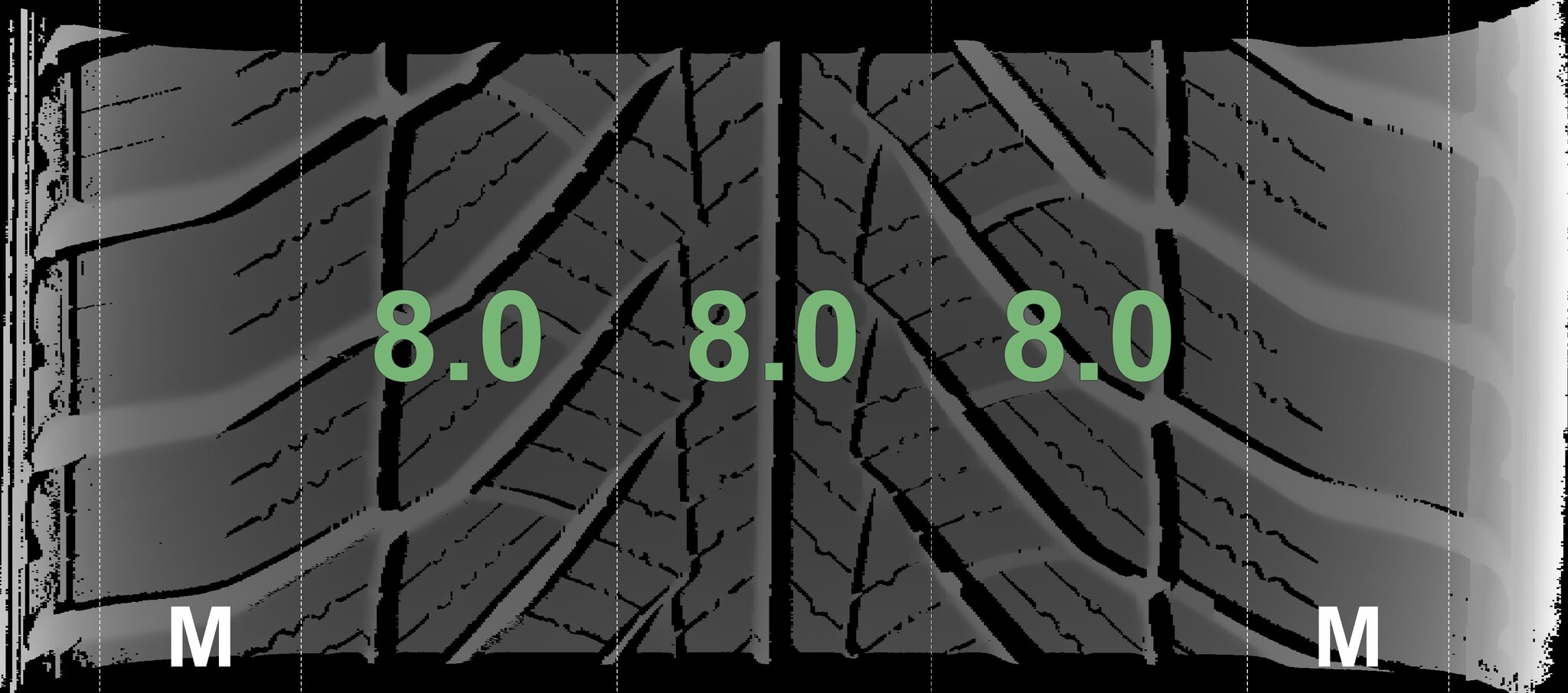| Condition | Profile depth | DOT | Rear Left | Used | 8.0 mm | 4320 |