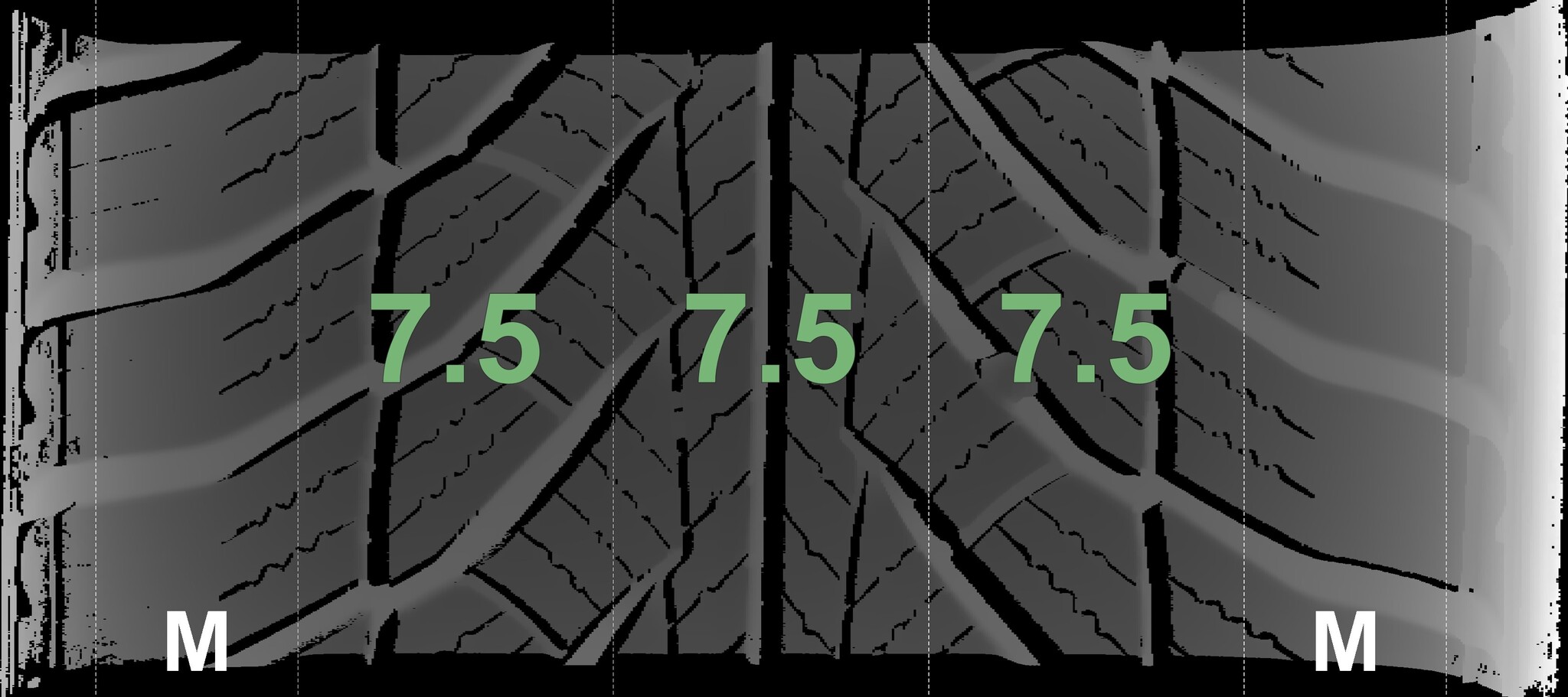 | Condition | Profile depth | DOT | Front Right | Used | 7.5 mm | 3920 |