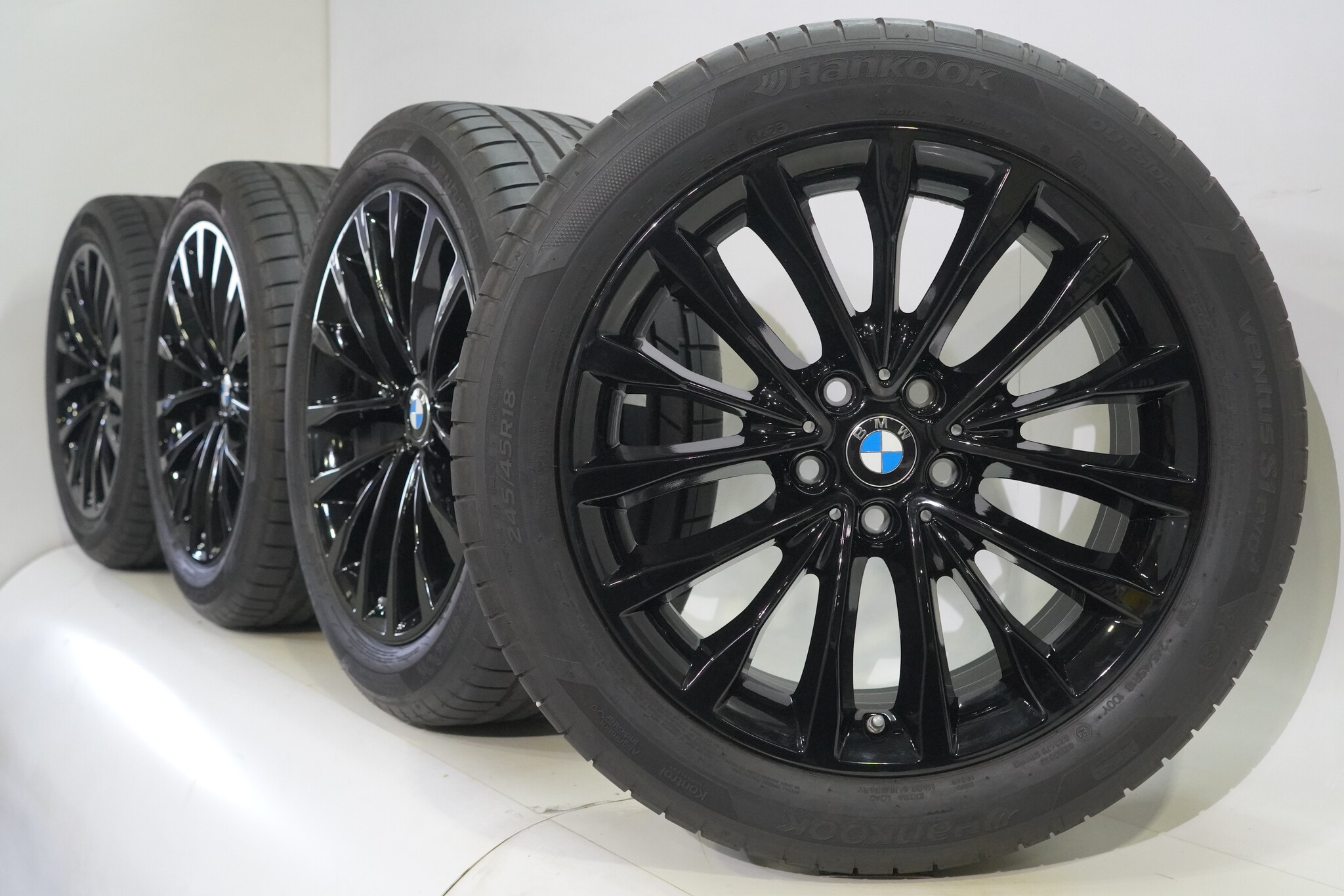Original wheel set from BMW, styling 632, 18 inch rims with Hankook Ventus S1 evo3 Runflat Summer tires. These rims are original rims from the BMW brand and suitable for: BMW 5 series G30 G31 8 series G14 G15 G16.