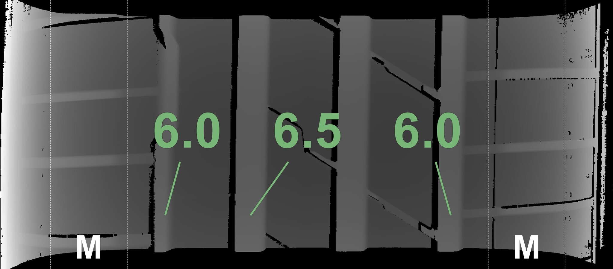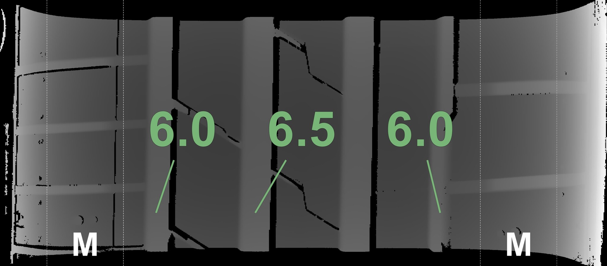 The measured tread depths and the details of the rims are shown above.