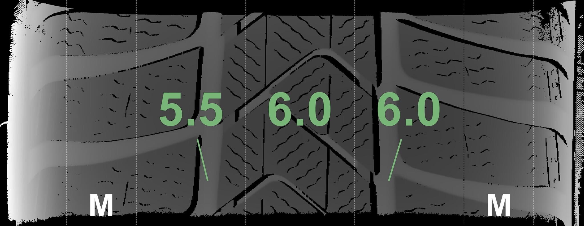 | Condition | Profile depth | DOT | Front Left | Used | 5.8 mm | 1822 |