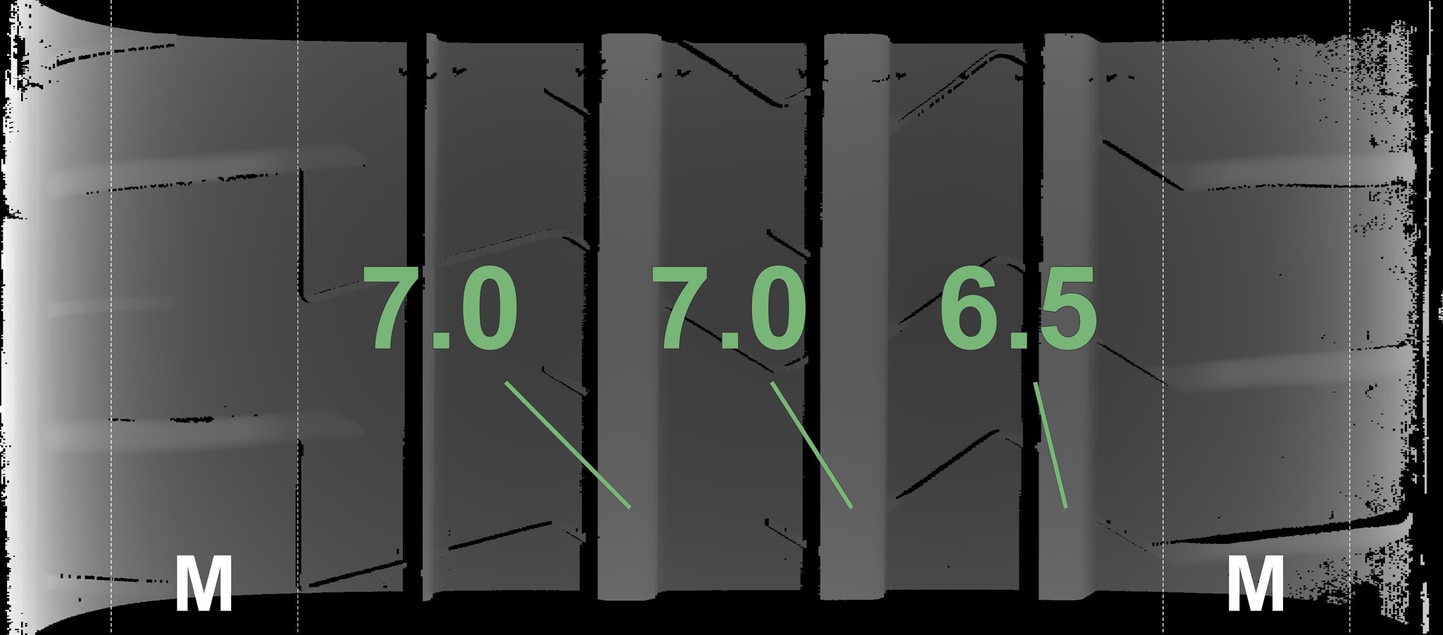 Condition | Profile depth | DOT | Front Right | New | 6.5 mm | 1125 |