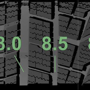 The measured tread depths and the details of the rims are shown above.