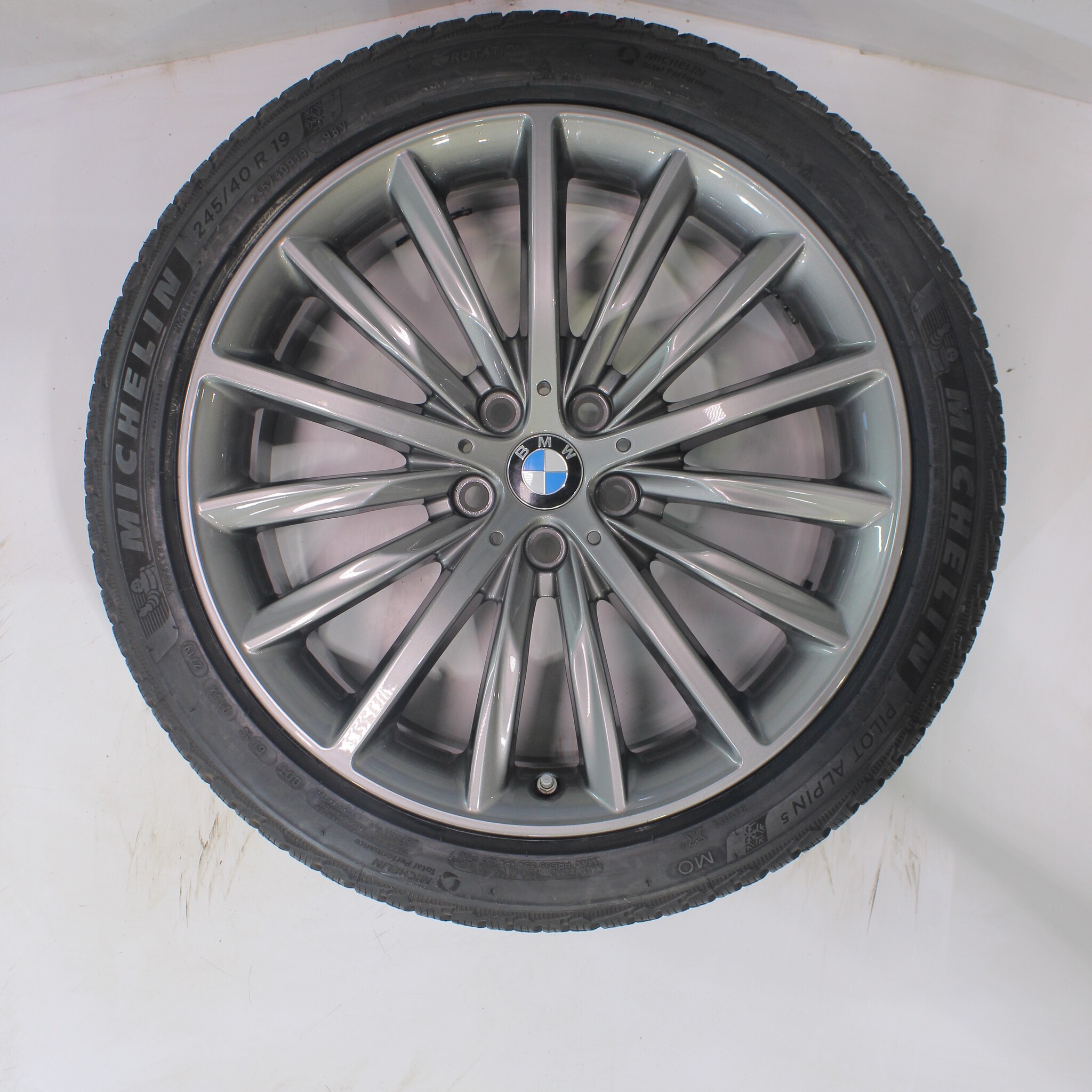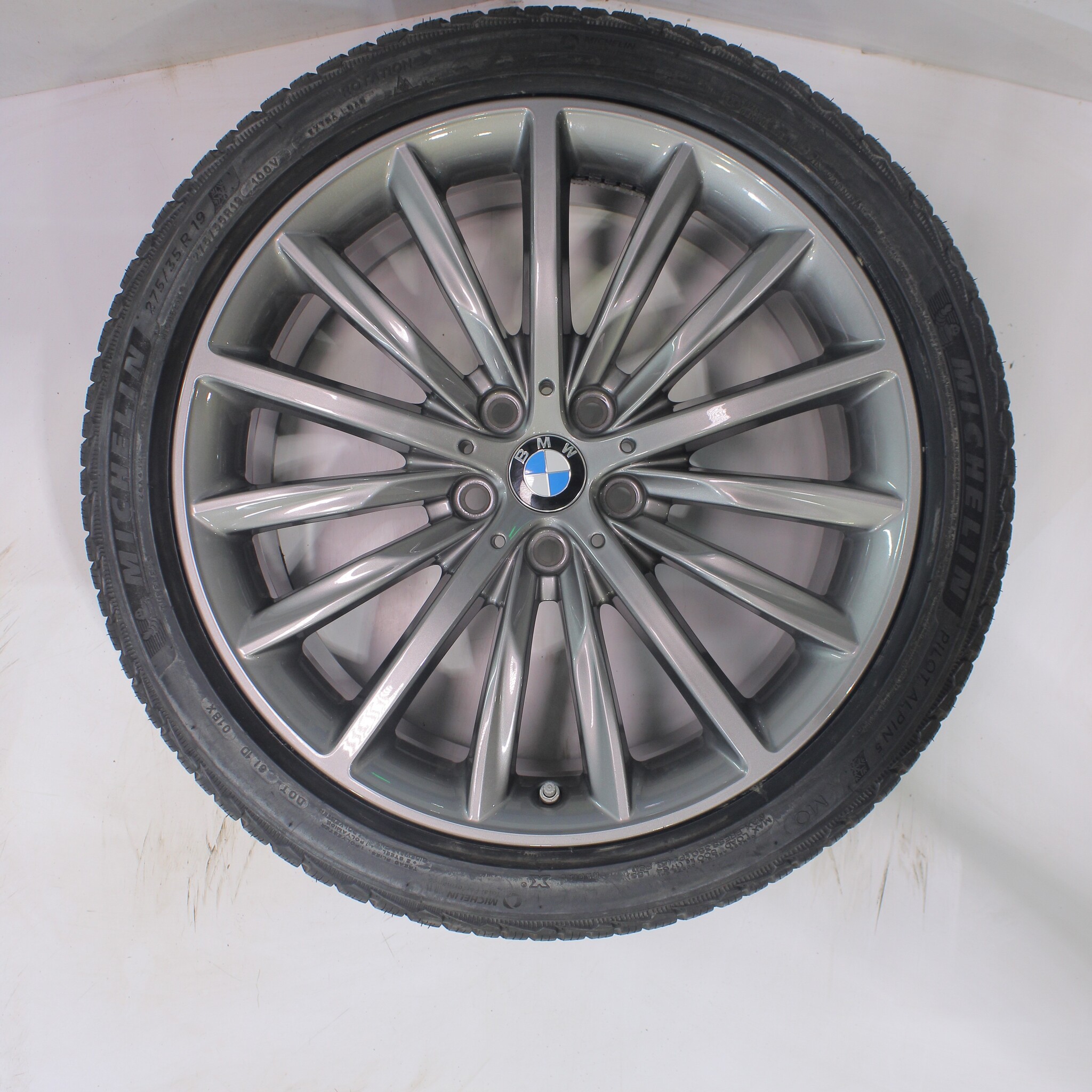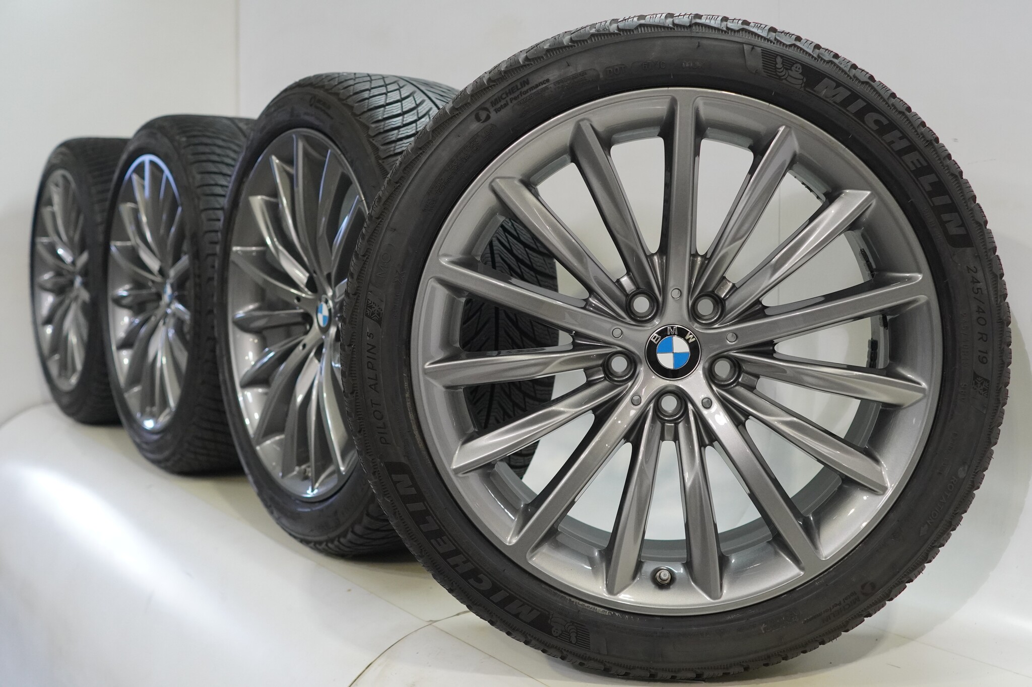 Original BMW wheelset, styling 633, 19-inch rims with Michelin Pilotalpin 5 winter tires. These rims are original BMW brand rims and suitable for: BMW 5 series G30 G31 8 series G14 G15 G16.