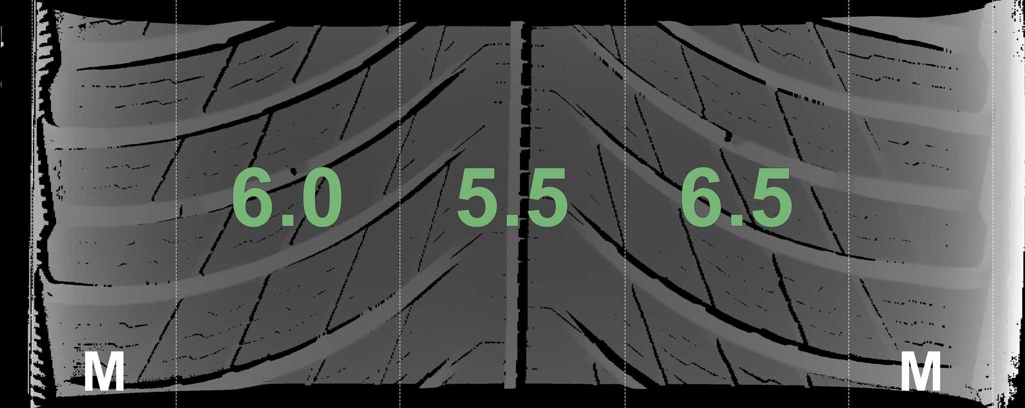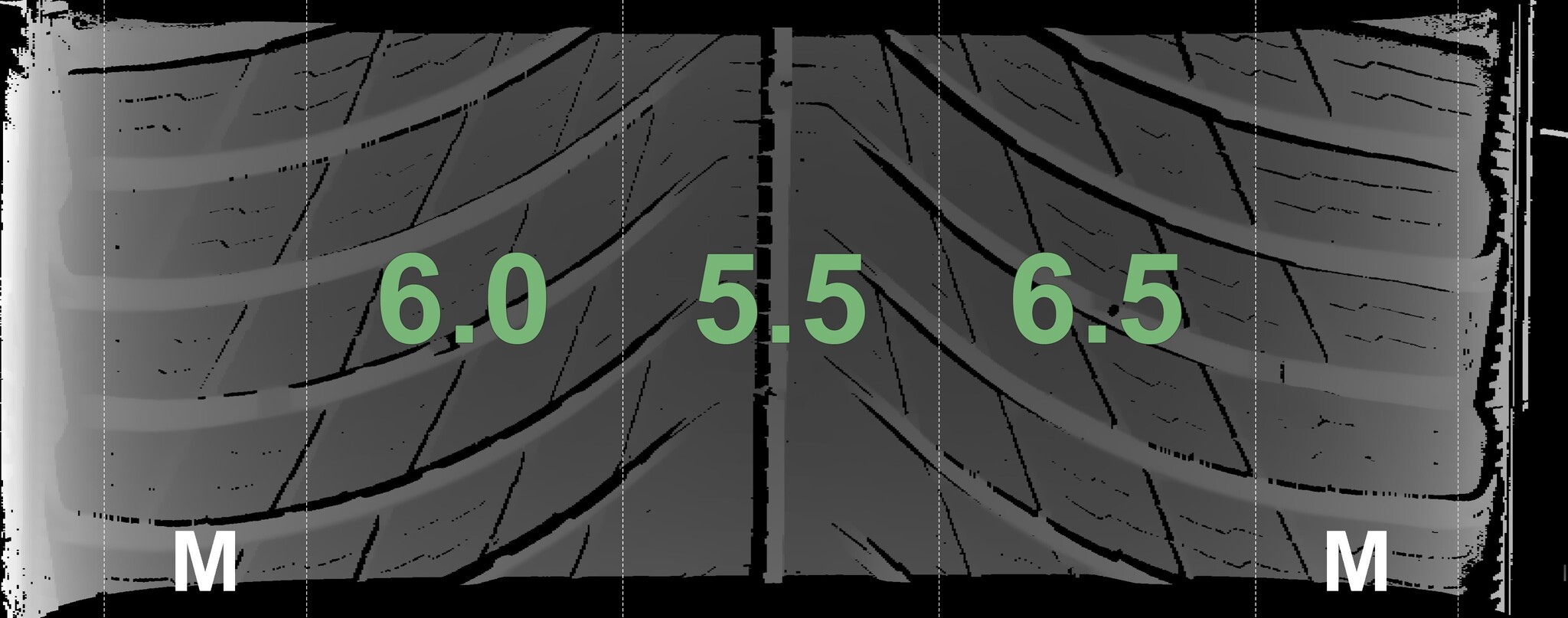 The measured tread depths and the details of the rims are shown above.