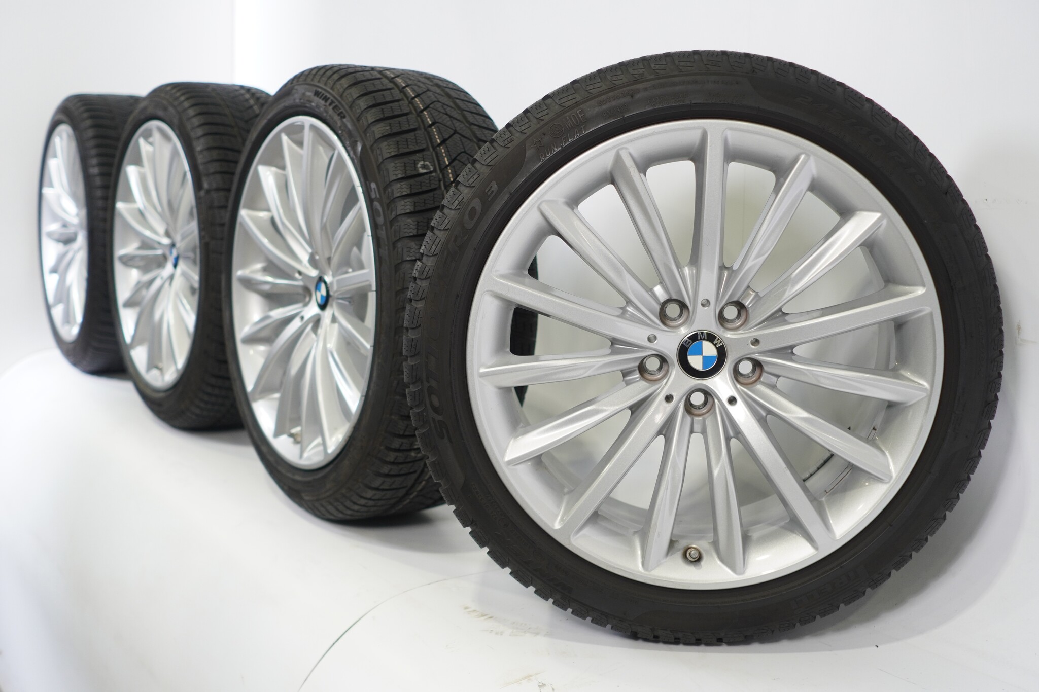 Original wheel set from BMW, styling 633 19 inch rims with Pirelli Winter Sottozero 3 Runflat Winter tires. These rims are original rims of the brand BMW and suitable for: BMW 5 series G30 G31 8 series G14 G15 G16.