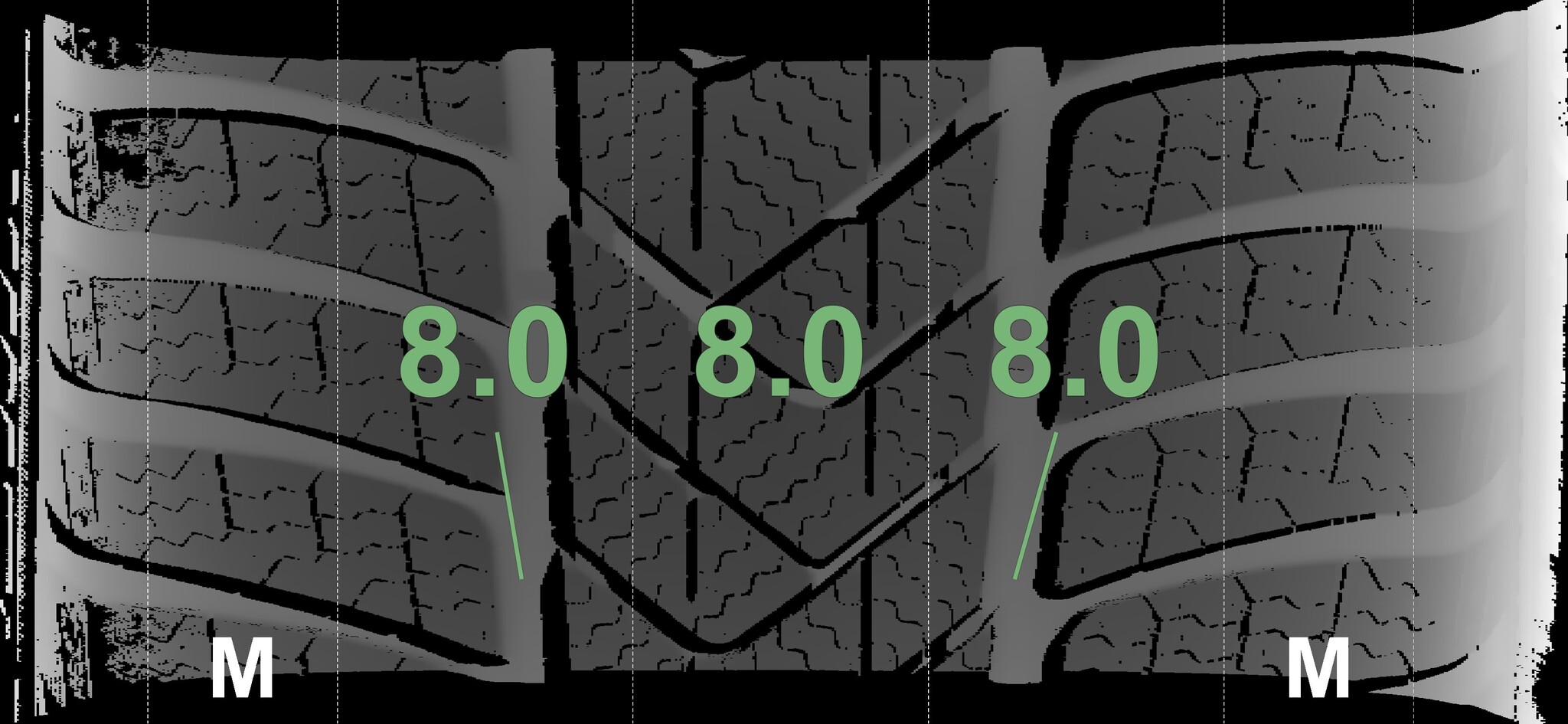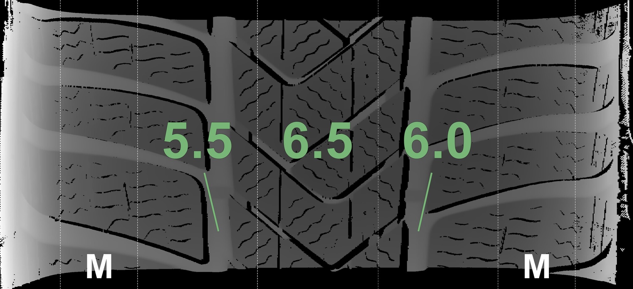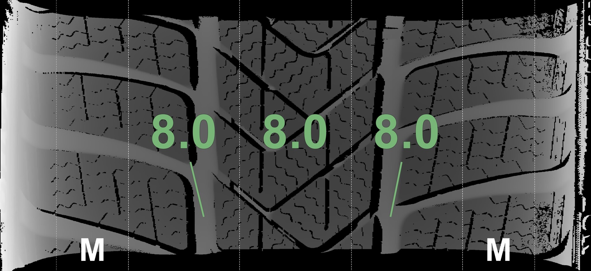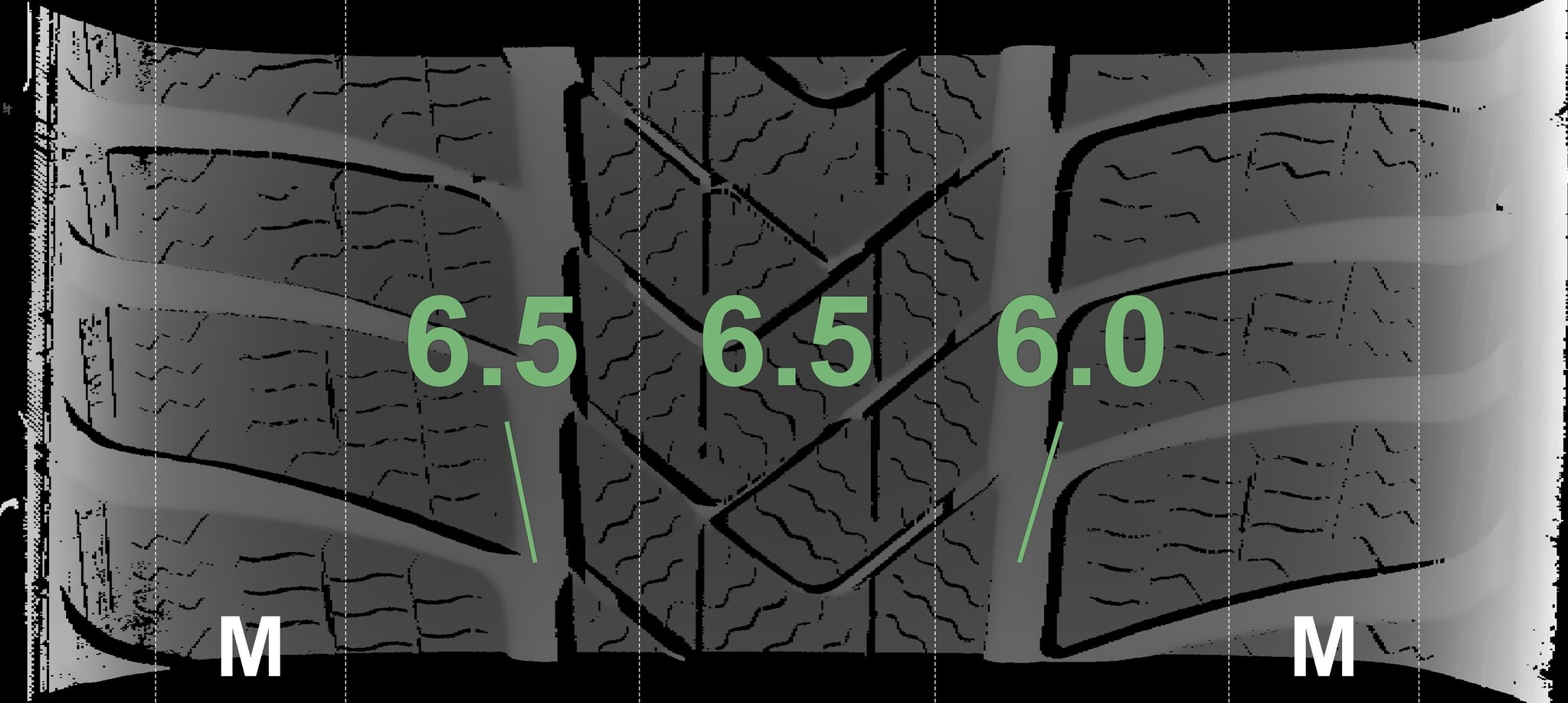 The measured tread depths and details of the rims are shown above.