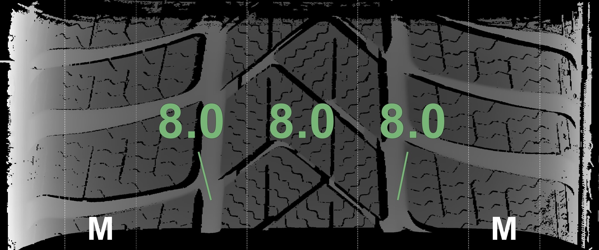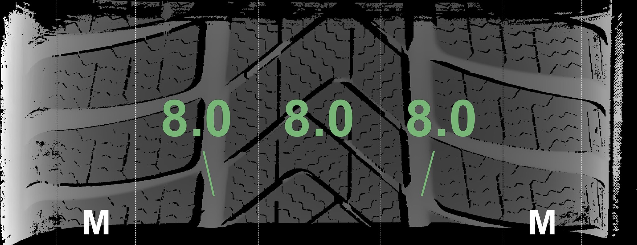 | Condition | Profile depth | DOT | Rear Right | New | 8.0 mm | 3224 |