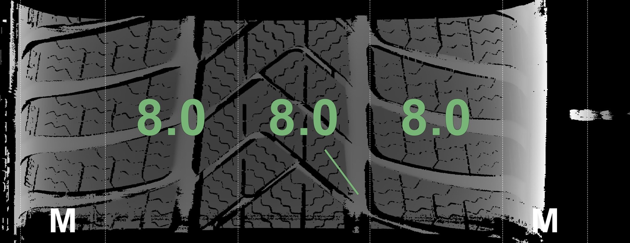 | Condition | Profile depth | DOT | Front Left | New | 8.0 mm | 4023 |