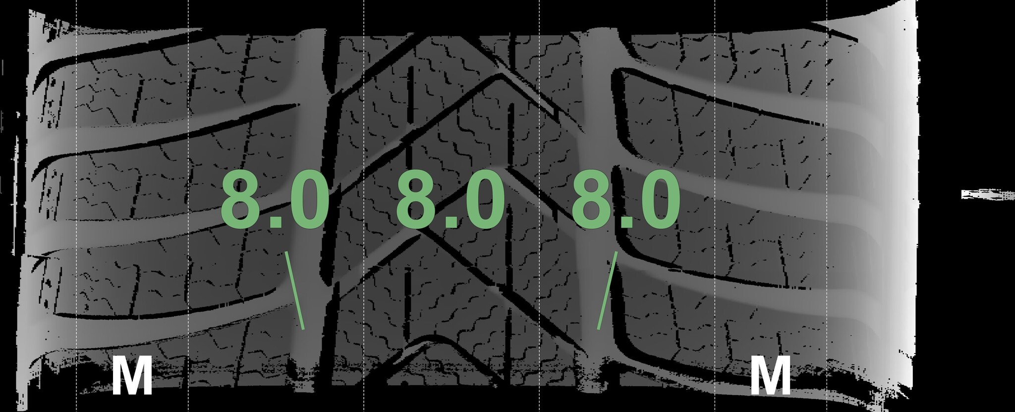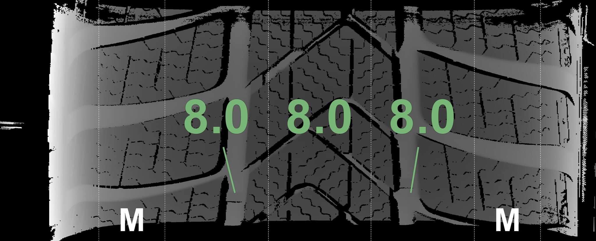 | Condition | Profile depth | DOT | Front Right | New | 8.0 mm | 4023 |