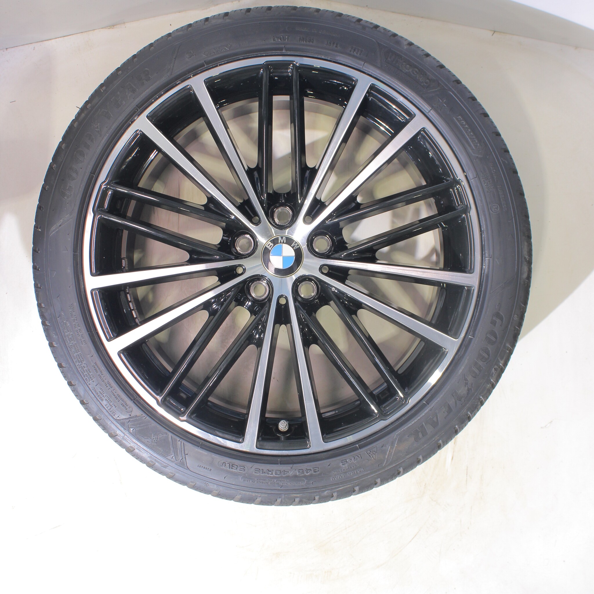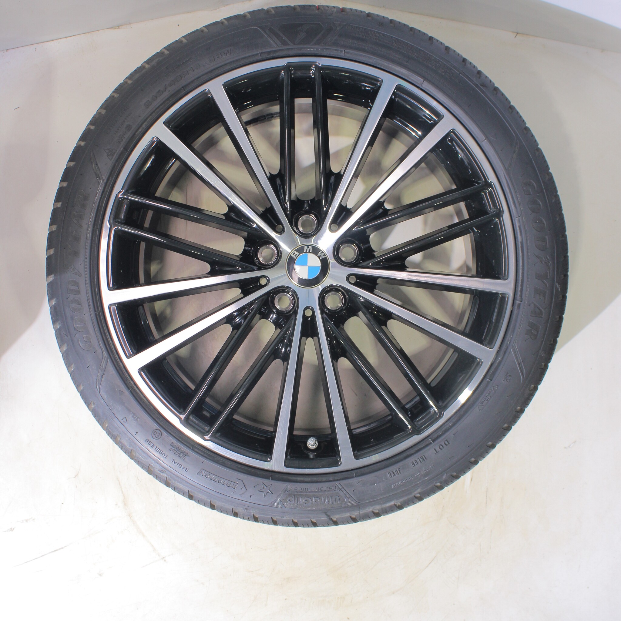 Original wheel set from BMW, styling 635 19 inch rims with Goodyear ULTRAGRIP PERFORMANCE + Winter tires. These rims are original rims of the brand BMW and suitable for: BMW 5 series G30 G31 8 series G14 G15 G16.