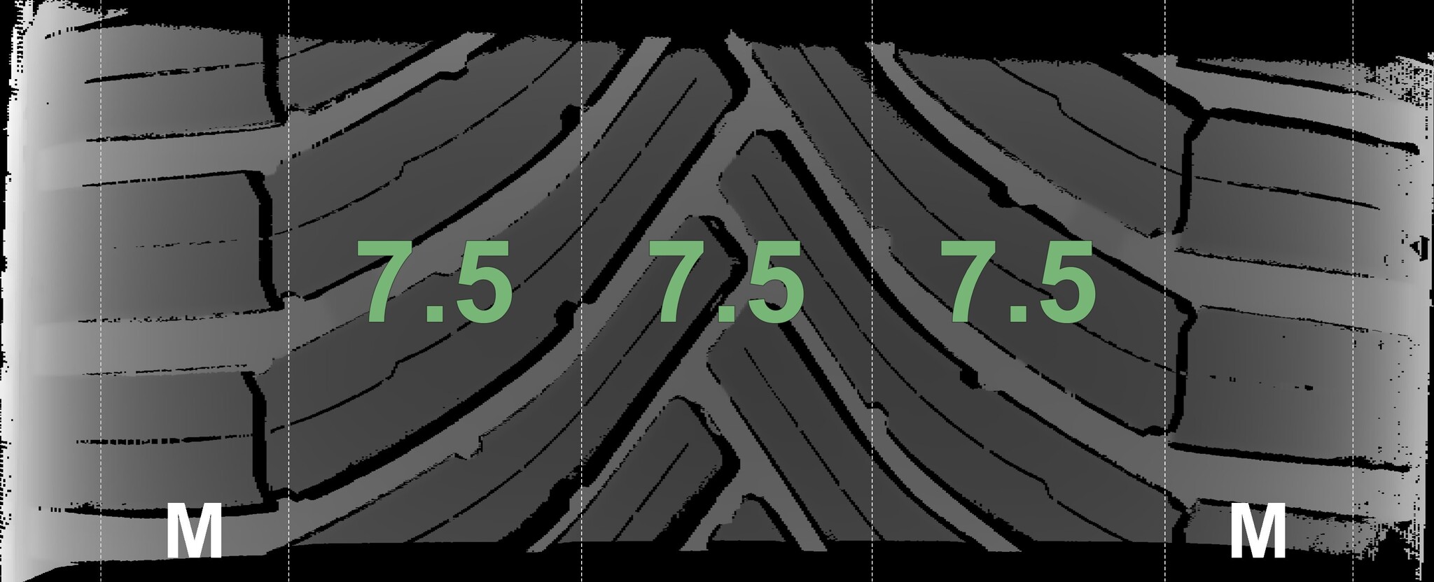 The measured tread depths and the details of the rims are displayed above.