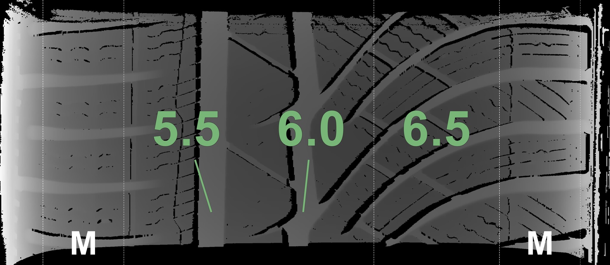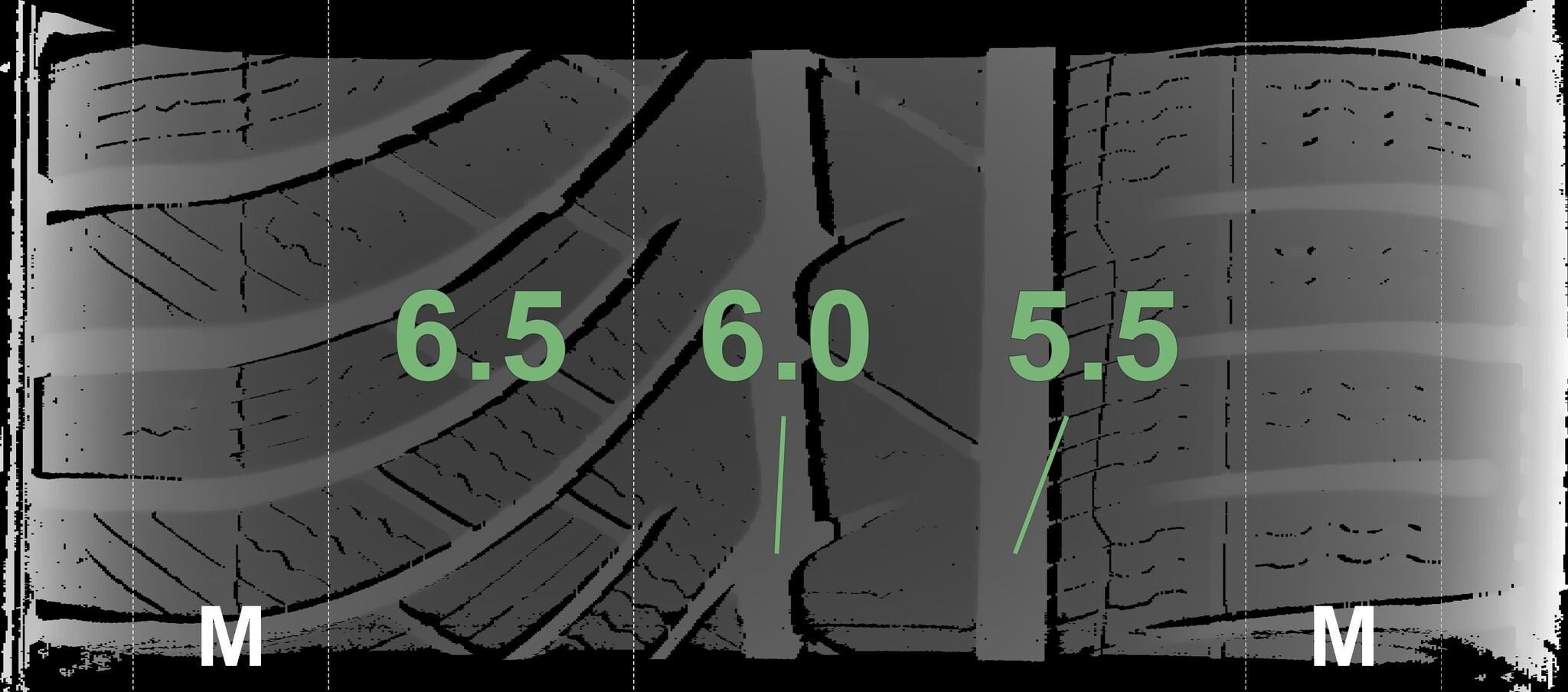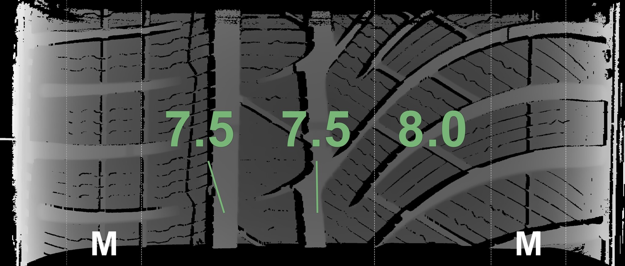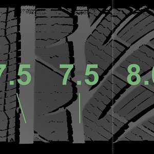 The measured tread depths and details of the rims are shown above.