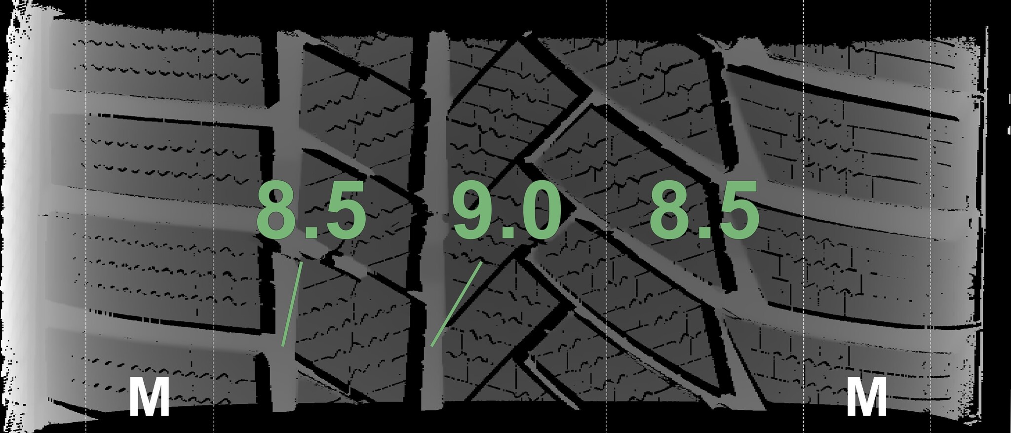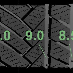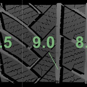 The measured tread depths and the details of the rims are shown above.