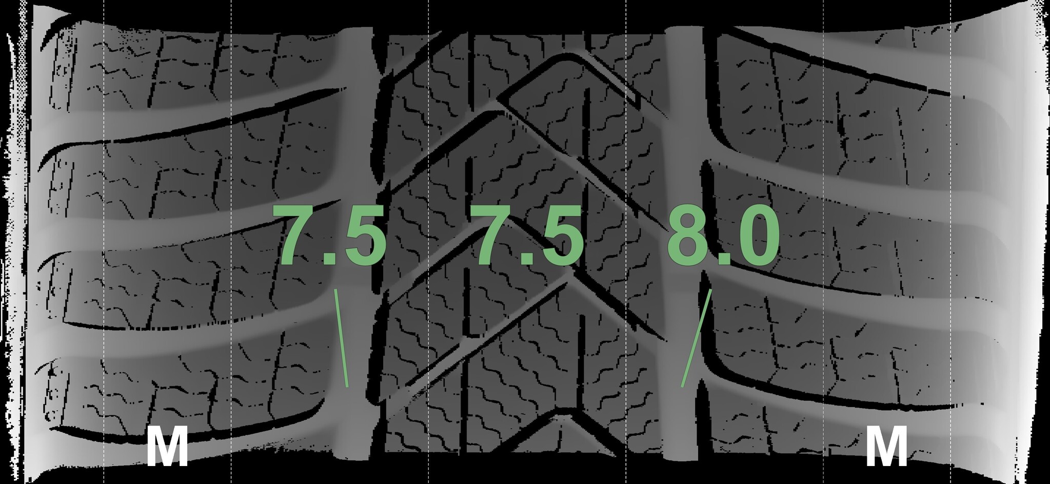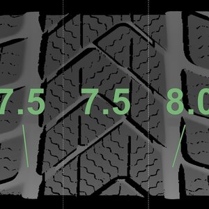 The measured tread depths and the details of the rims are shown above.