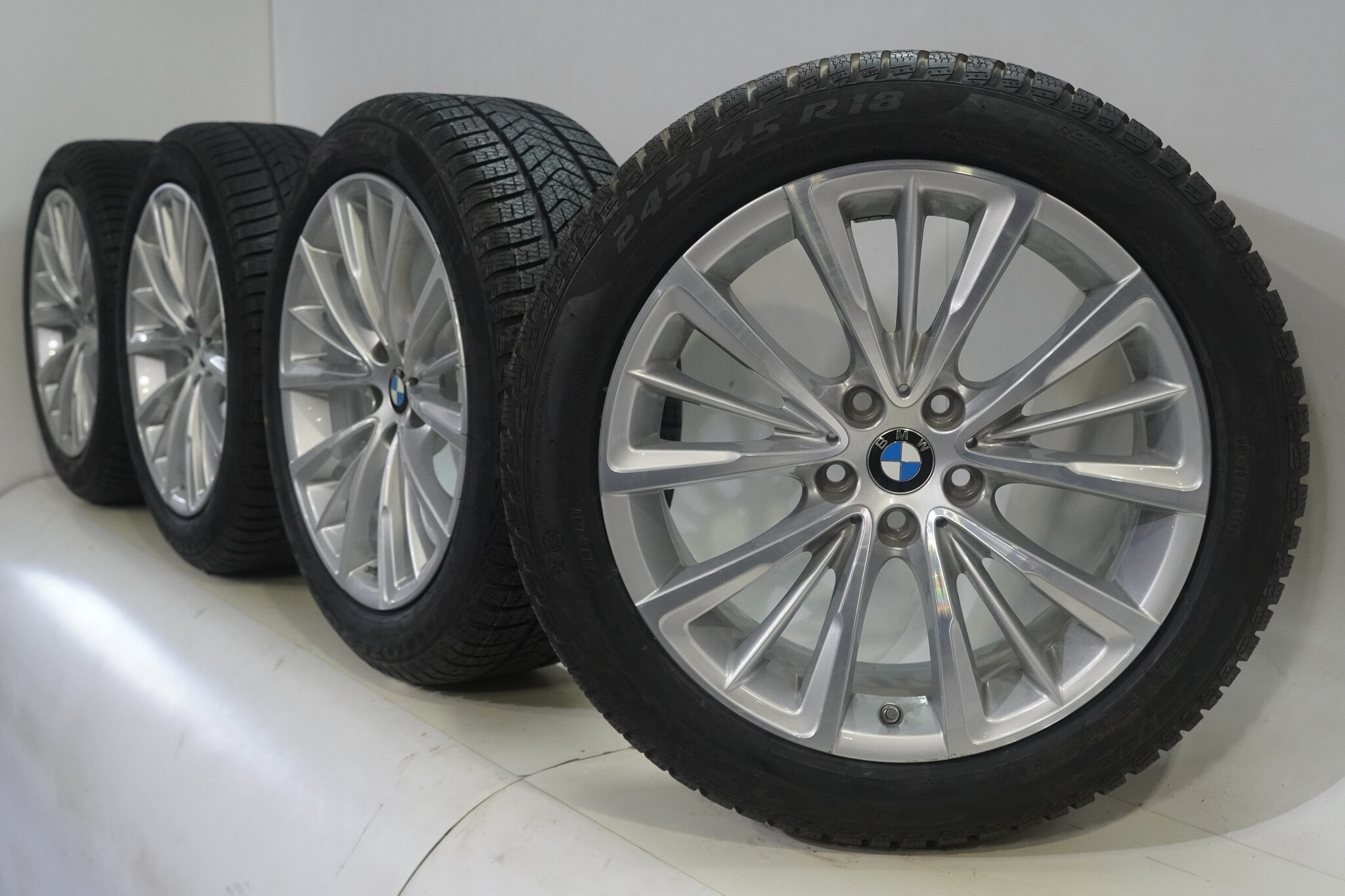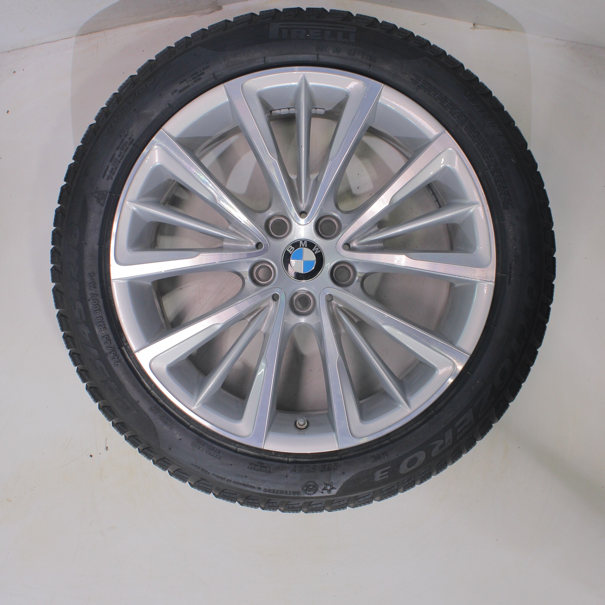 Original BMW wheel set, styling 643 18-inch rims with Pirelli Winter Sottozero 3 Runflat Winter tires. These rims are original BMW brand rims and suitable for: BMW 5 series G30 G31 8 series G14 G15 G16.