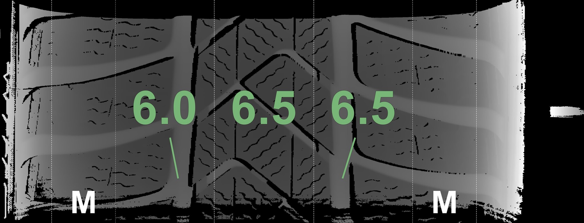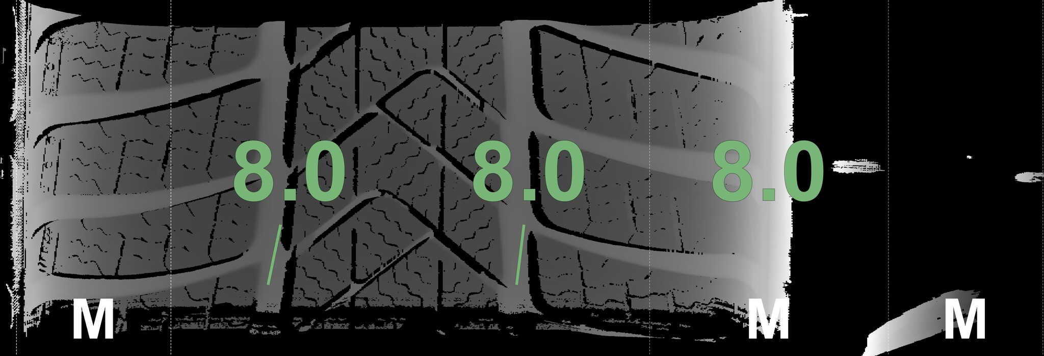 The measured tread depths and the details of the rims are shown above.