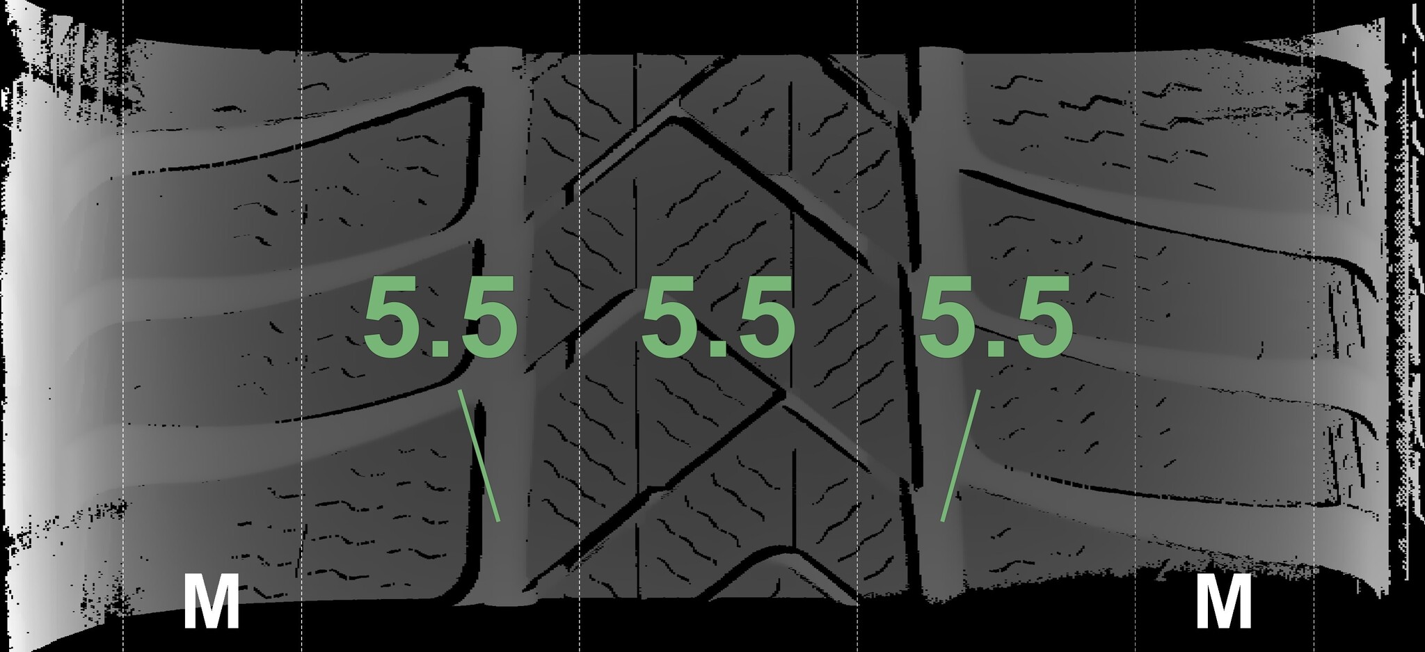 Condition | Profile depth | DOT | Front Left | Used | 5.5 mm | 4820 |